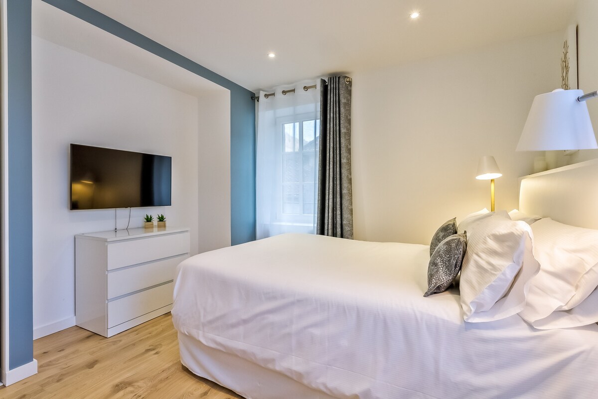 - Bedroom n°2, Lake side : 1 queen-size double bed with en-suite bathroom (Baht-tub and shower), storage, television, and workspace.