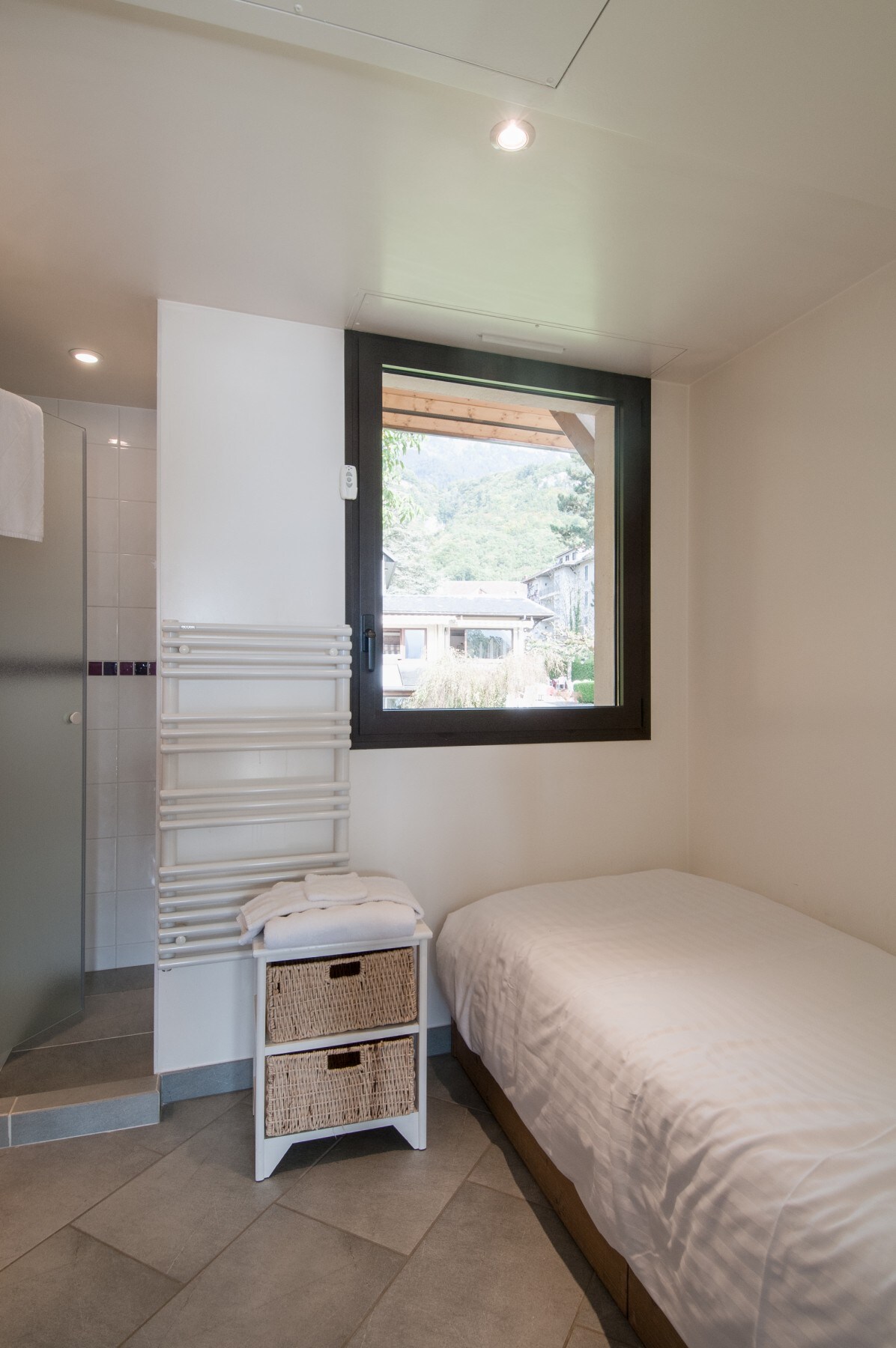 - On the same floor, there is a separate room with a single bed (90x190cm), shower, and sink. WC’s are separated.