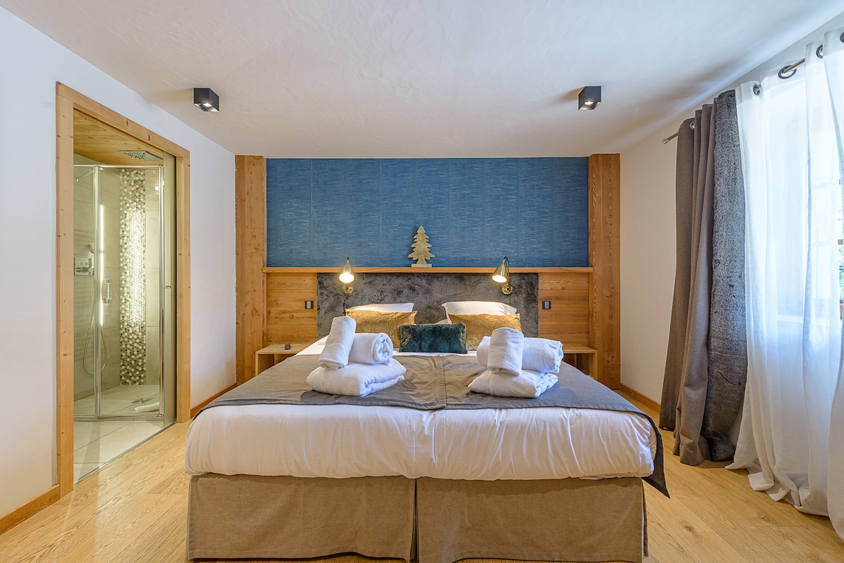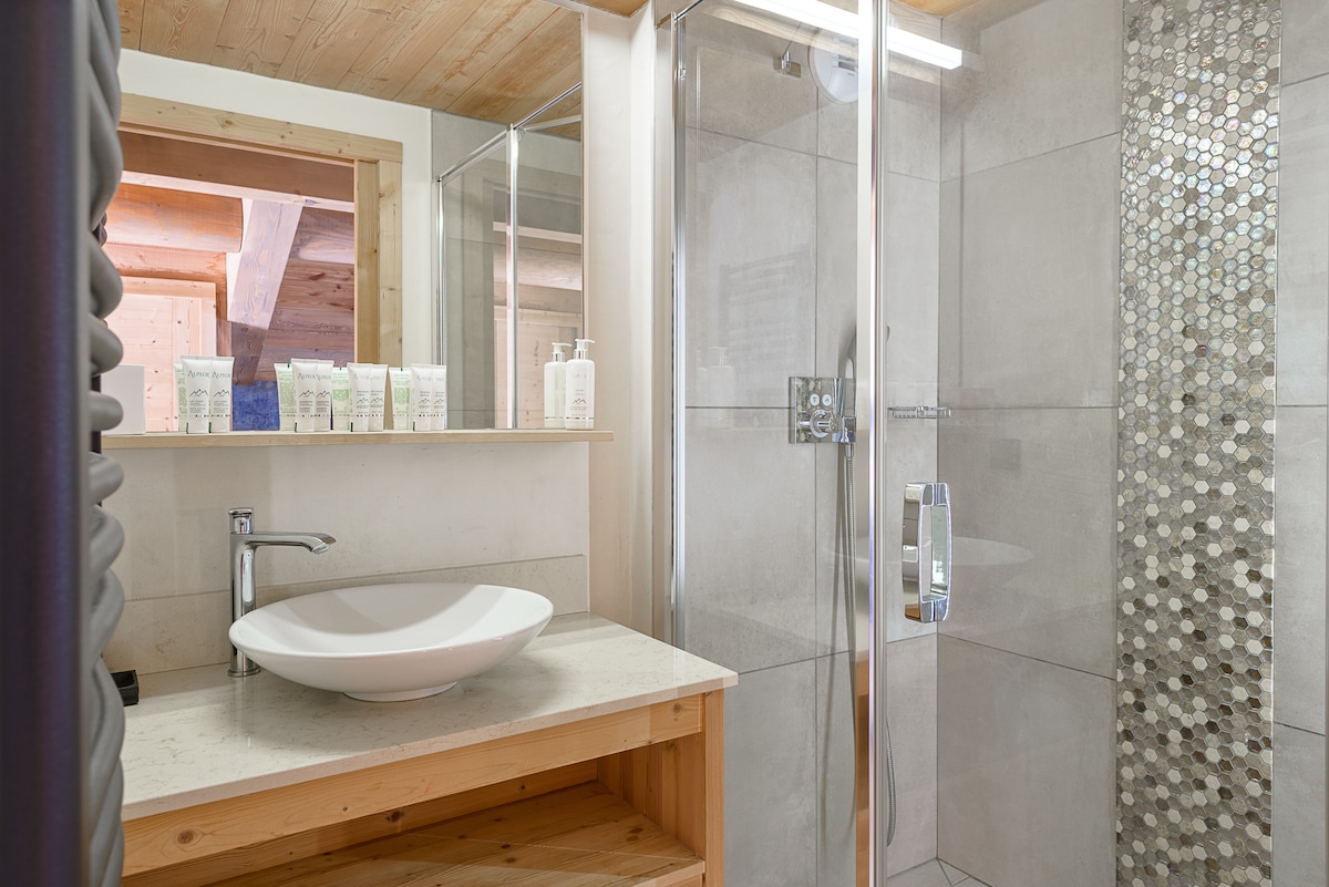 Set in a former farmhouse, it consists of 2 half-chalets offering the possibility to be rented in full thanks to removable partitions on the top floor. Here, each bedroom has its own en-suite bathroom and private toilet.