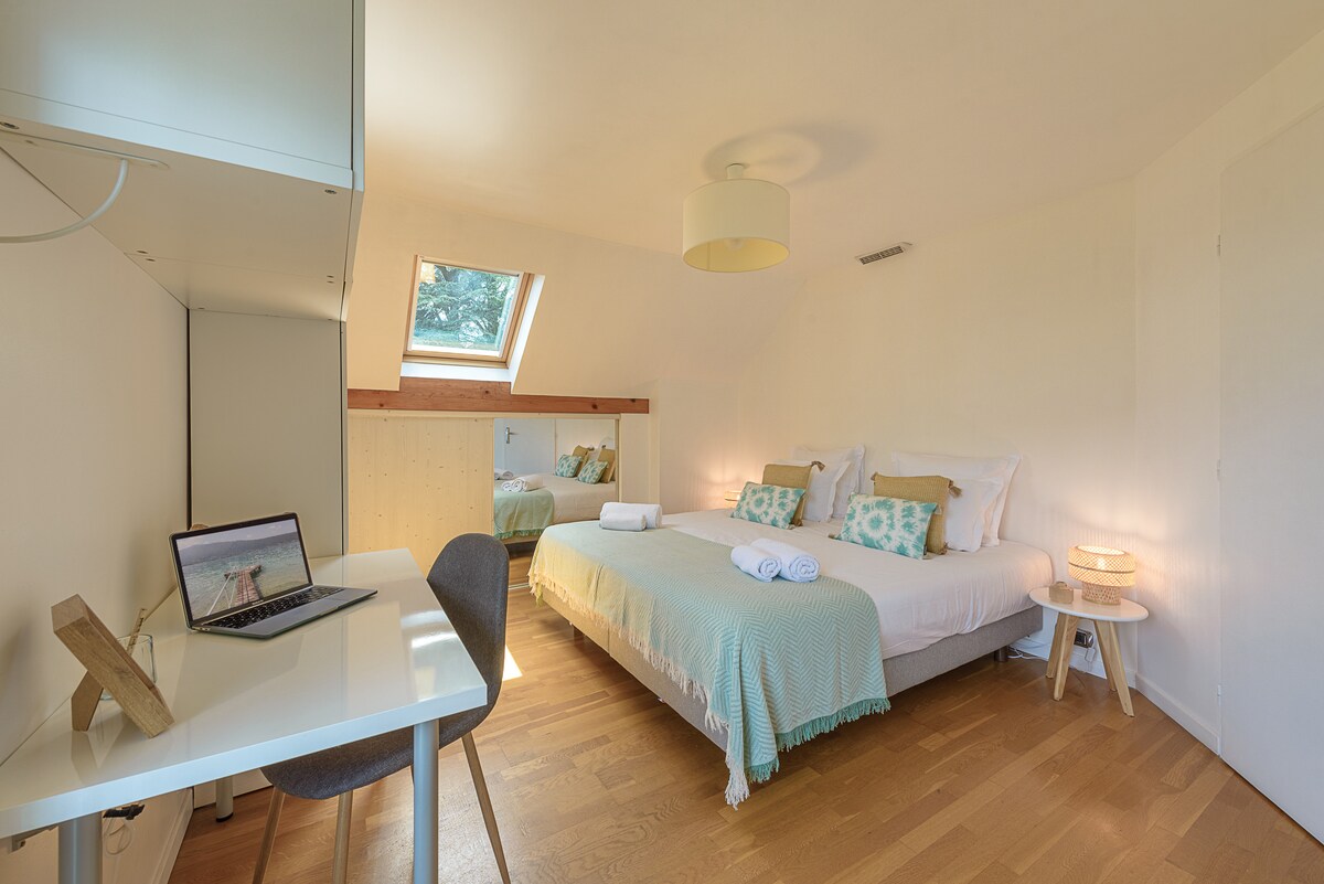 - Bedroom n°5: 2 single beds that can be joined together, desk, and storage closets