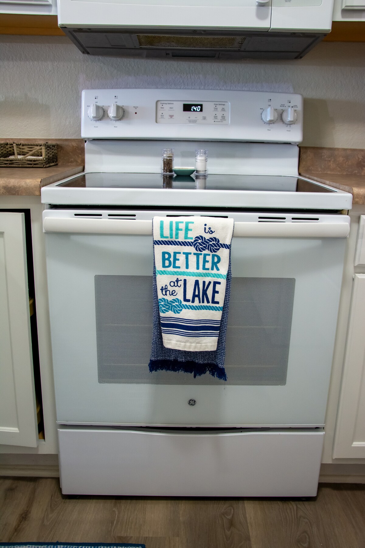 This common area is a great location for your whole group to gather and enjoy quality time. An elegant nautical theme graces the spacious living room – a gentle reminder of the beautiful lake beyond the sliding glass doors. This is the perfect place to get cozy and catch up on your favorite TV shows, play board games, plan your next adventure, or catch up on emails at the work desk.