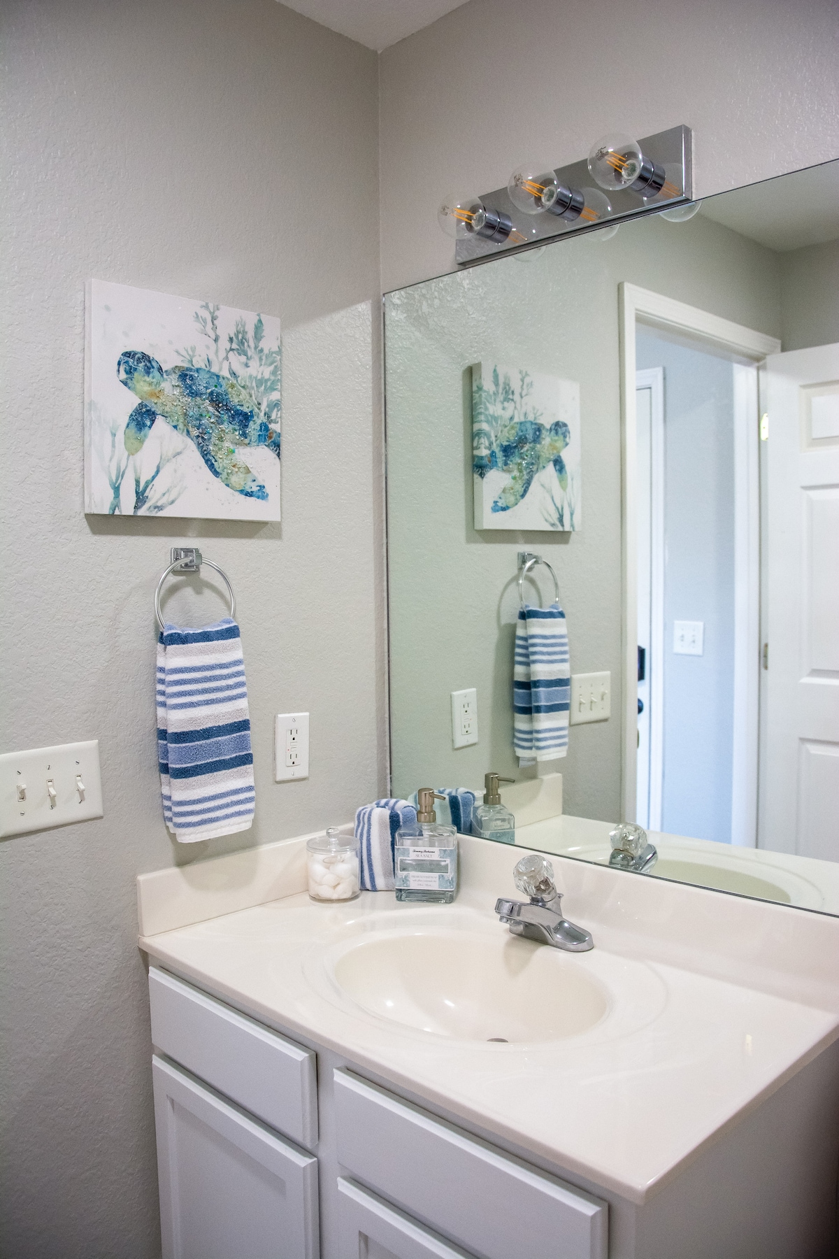 With two full baths, there is ample space to freshen up during your stay. The primary bedroom has a private bathroom, while the family bathroom serves the rest of the household. Complimentary toiletries and fresh towels are supplied for your convenience.
