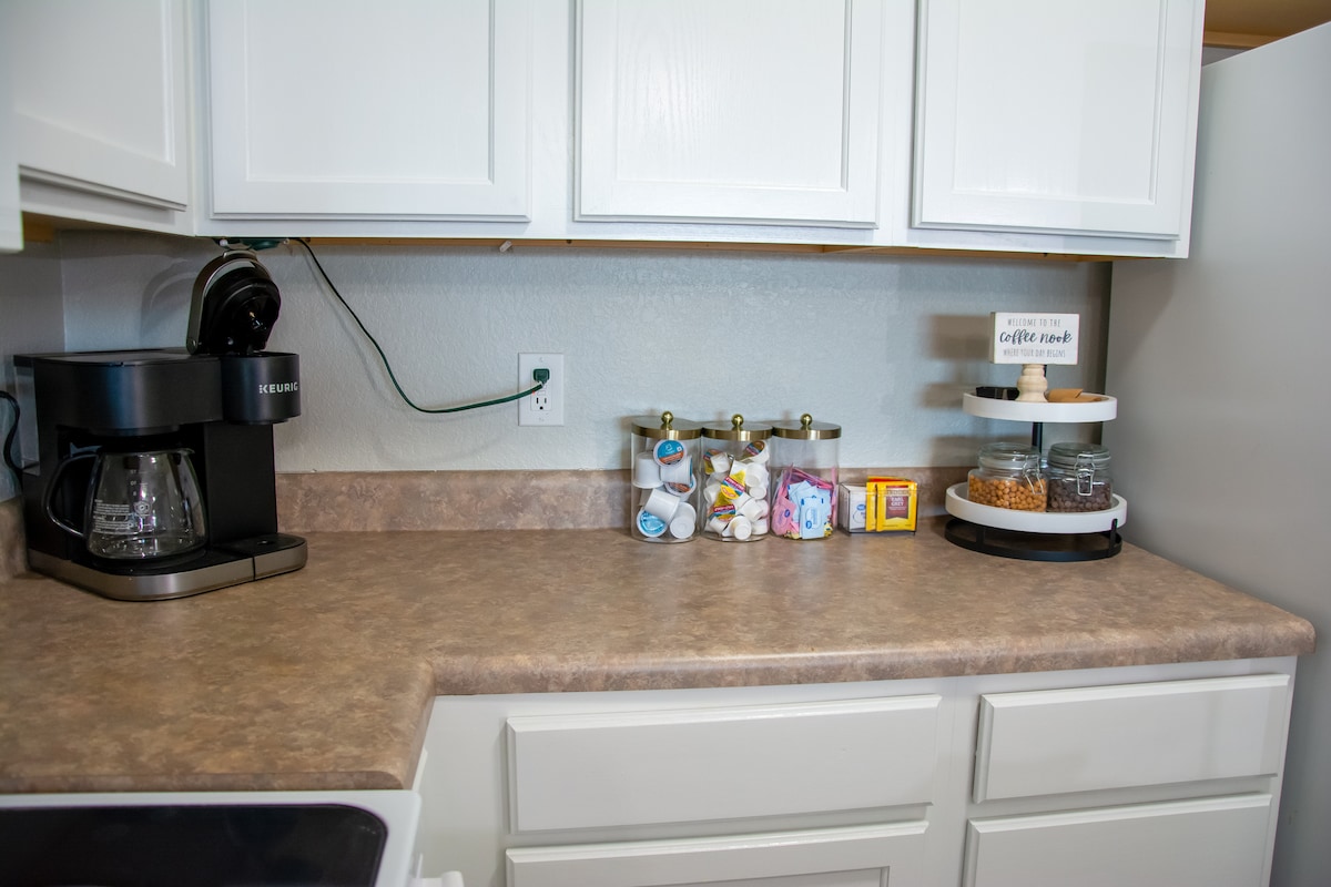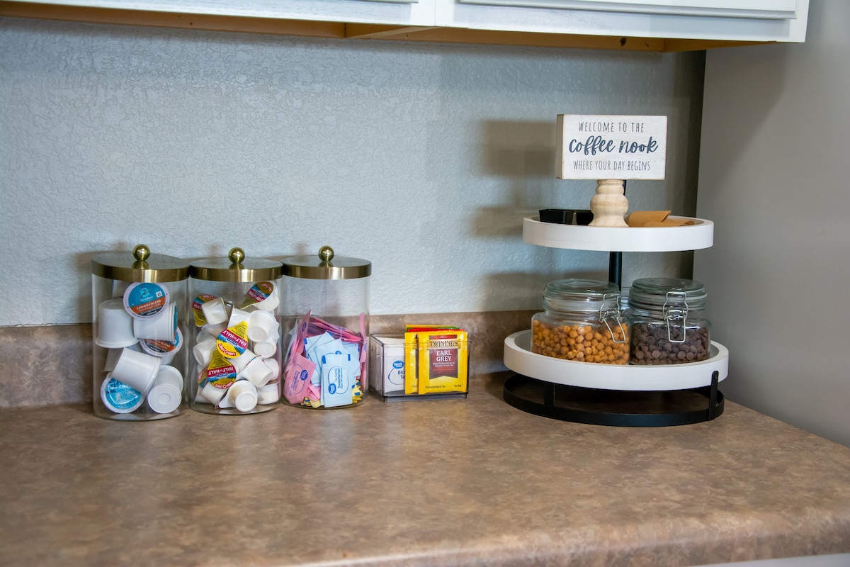 ✹ COMPLIMENTARY ESSENTIALS: We provide guests with essential toiletries, coffee, tea, and creamer.