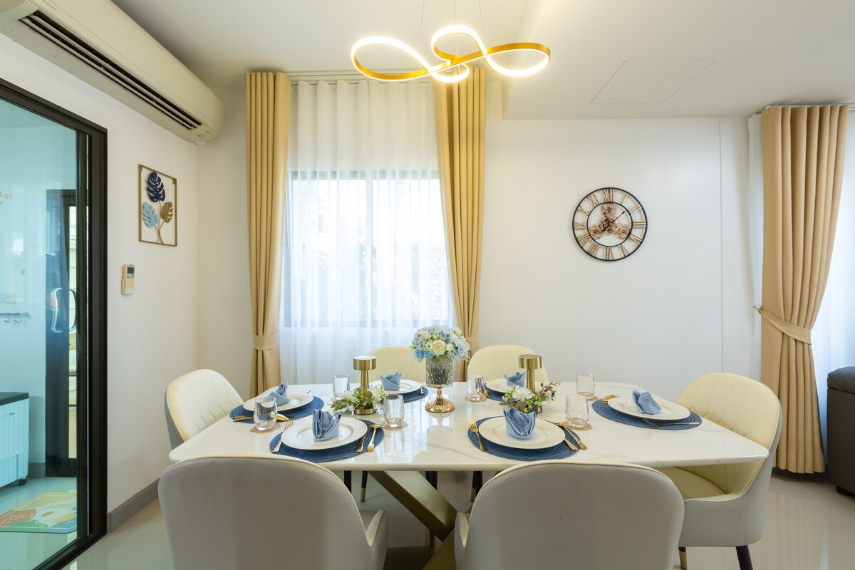 Dear Guests, Important note to our house rule before you make a reservation. Kindly see below and inform everyone in the group. * Only register guests are allowed to stay at the villa. ( all copies passports have to be sent once booking confirmed ) * Kindly turn off aircon when not use and when you are not in the rooms and when you leave the property * Please not have windows open when aircon is on. * No smoking inside the property please ( Outdoor area is ok) * Big and loud music party that could disturb neighbors not allowed * 2 Parking slots available only inside the house and in front of the main gate * Security deposit of 5,000 THB will be collected on arrival in cash (Thai Baht onloy) and returned on the check-out day at departure time subject to damage or breakages. * Price is not included utilities (electricity & water) , you will be charged THB7 per unit for electricity and THB12 per unit for water. * Daily Cleaning is not included but can be arranged (Required 1 day notice in advance) at extra cost of 1,000THB per time. (Excluded Linen & towels) * The price is starting at 3 bedroom rate for 6 pax. Villa can accommodate up to 7 pax maximum with extra bed set up at 300THB per person per night. * Full set of keys / key cards are required to return upon Check out. Any loss /damage will incur a 2,000 THB charge per set / key NOTE: any incidental costs payable at the property must be paid in cash Thai Baht only. Thank you for respecting our house rules. We look forward to welcoming you to our villa! - Throw rubbish away
