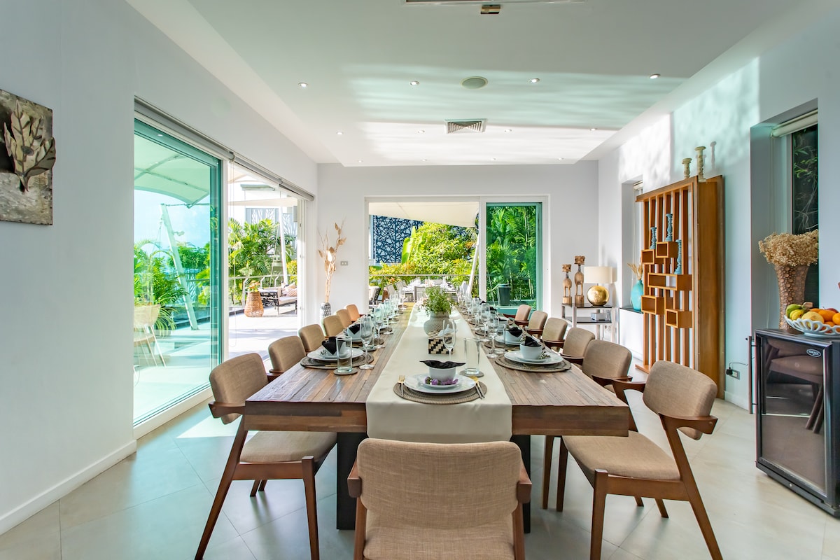 IMPORTANT NOTES The rates shown in Airbnb are for 4-bedroom use for up to 8 guests. Please note the rates are based on the following conditions: - 2 persons sharing per bedroom. - Booking of 8 persons will have use of 4 bedrooms - Booking of 10 persons will have use of 5 bedrooms - Booking of 12 persons will have use of 6 bedrooms - Booking of 14 persons will have use of 7 bedrooms If guests require use of rooms with one (1) person occupancy then you need to book for two (2) people to have use of the room. For example, if you are 5 people and need 5 bedrooms...you need to book for 10 guests. If you are 7 people and need 7 bedrooms...you need to book for 14 guests. DUE TO LIMITATIONS ON AIRBNB PLATFORM THE MAXIMUM NUMBER OF GUESTS YOU CAN SELECT IS 16. IF YOU ARE MORE THAN 16 GUESTS OR NEED USE OF BEDROOMS WITH SINGLE USE, YOU NEED TO INFORM US VIA THE CHAT SO WE CAN ADVISE YOU OF ANY ADDITIONAL COST. - Electricity up to 300 units per day which is plenty with normal usage and turning the AC off when not in the room. Further units are 7 Baht per unit. We also have large Solar systems on the roof so the electrical usage is quite low. - Airport transfers can be arranged for 1,200THB per van per way. Required: 1000 USD or any currency equivalent to 1000 USD as security Deposit on arrival. 3 bedrooms have a king bed 4 bedrooms can be set up as 2 twin beds OR 1 super king bed. Comfortably fitting 14 people. For further beds 4 bedrooms out of 7 bedrooms have a sofa bed at extra charge. Extra person charge 55USD Per person Per night Included in the rate is full staff, Villa Concierge manager is available from the day you book to plan with you your complete stay from the time you book and throughout your stay. Villa Manager Is available day and night per whats app to assist you with everything you may need during your stay. Daily cleaning, The villa is cleaned daily Villa Chef Villa Dining Villa Namaste offers a tempting menu of Thai specialties and Western dishes. A full wine, spirits and soft drinks menu is also available. Guests are encouraged to plan their meals together with the villa chef, ideally a day in advance to allow time to buy groceries and prepare meals. To cover the grocery shopping costs, guests are asked to provide a cash float in advance, and staff will keep all receipts from their shopping for reference. A chef or in-villa shopping service is available for THB 800, covering a grocery cost of up to THB 4,000. For grocery expenses exceeding THB 4,000 a handling fee of 20% will apply.