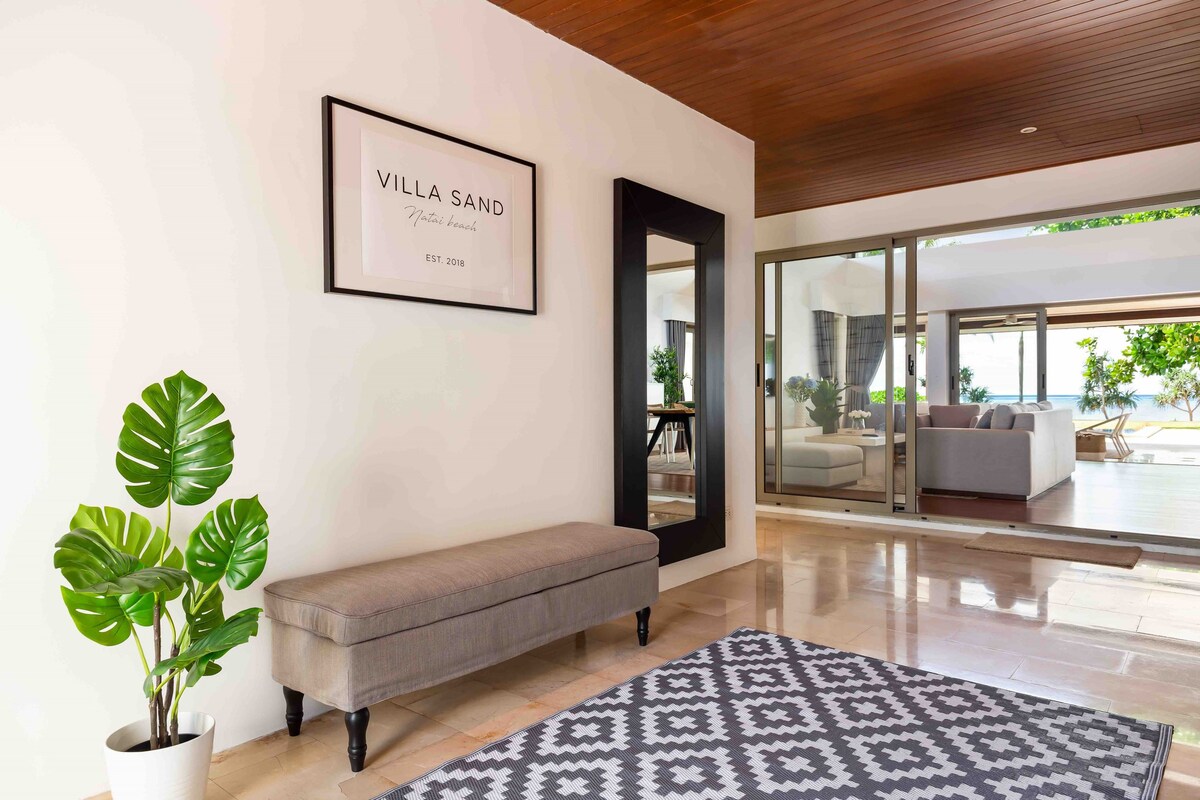 Villa Sand seamlessly blends indoor elegance with outdoor splendour, creating an inviting space that maximises the beauty of its beachfront location with a wide lawn as a playground for children.Indoor Living: