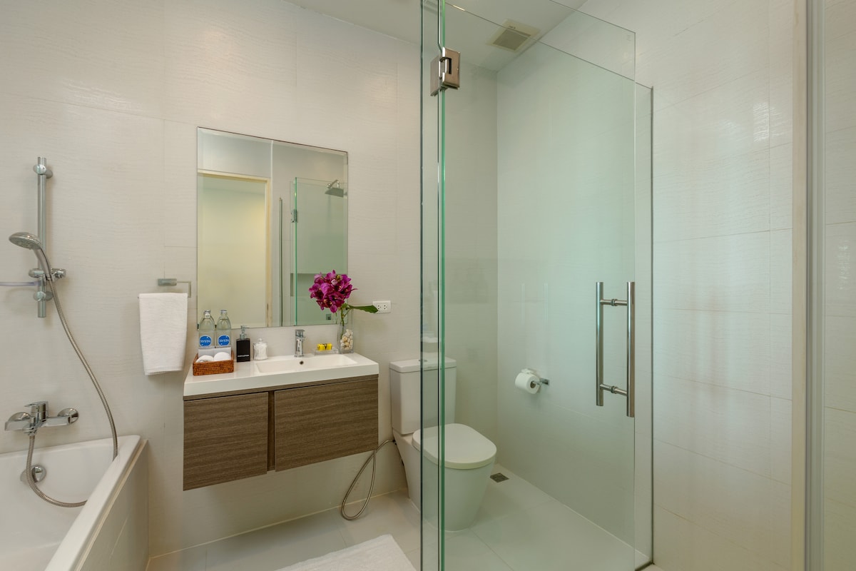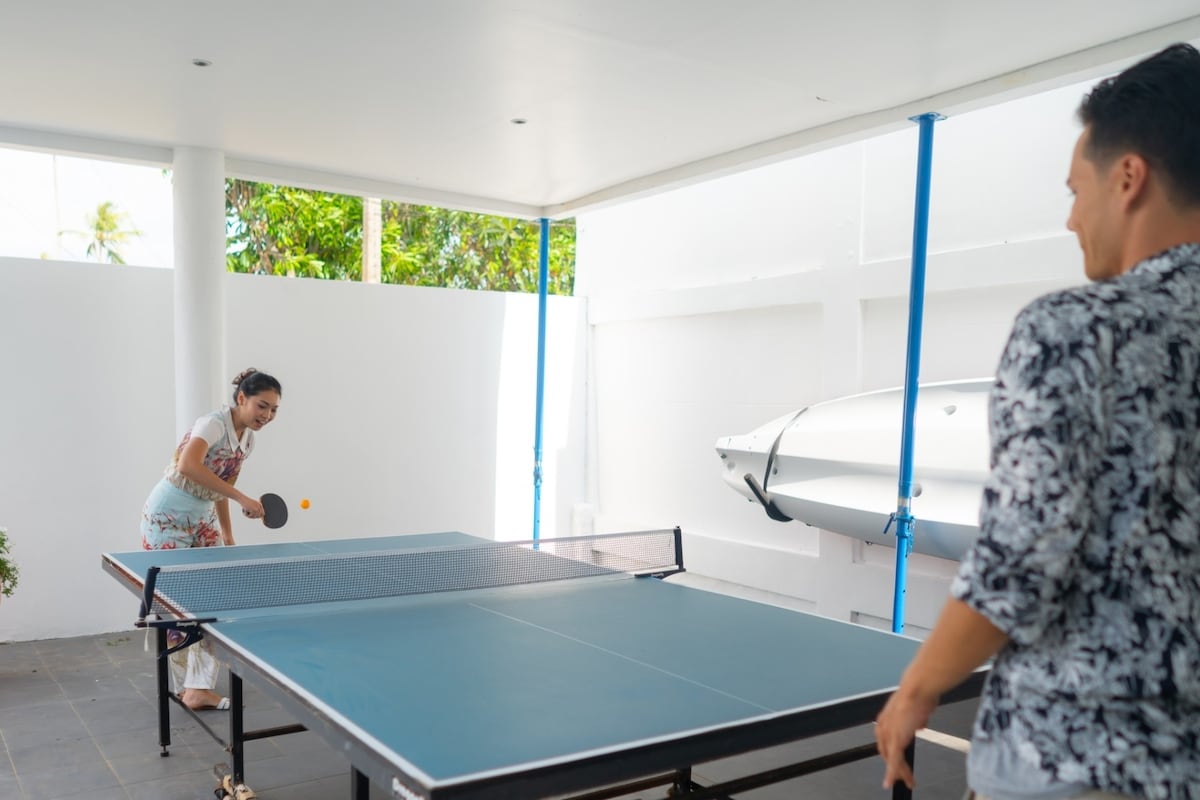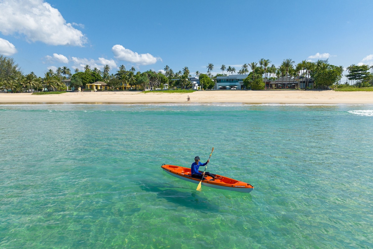 Guests can enjoy a wide range of outdoor activities on the property’s expansive grass lawn, including sunbathing, playing football, or enjoying a friendly game of croquet. The villa is also equipped with stand-up paddle boards and kayaks for aquatic outings along the beautiful shores of Natai Beach. Entertainment options also include a B&O portable Bluetooth speaker, 2 Apple TVs, and Samsung Smart TVs with Netflix, ensuring that guests are never short of things to do.