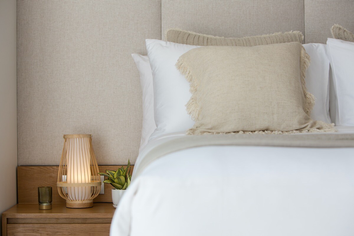 Note: this listing features either 3 double bedrooms (sleeping 6 adults) or 2 double bedrooms and the kid's room (sleeping 4 adults and 4 kid's/young teenagers). The images for Bedroom 2 show both the double room or Kid's room.The furniture was custom made to bring a beautiful well integrated finished look throughout, especially when combined with the natural colour scheme of the rest of the interior, the villa exudes a sense of peace and simplicity. Villa Amylia Ruby has an outdoor lounge area shaded by a large umbrella and the full-width windows create a more cosy home and gives you a subtle mix of living in and outdoors. The terrace runs the full length of the pool which has an integrated kids’ pool.