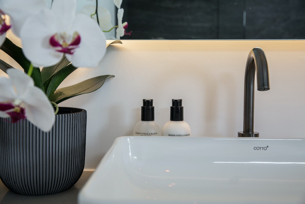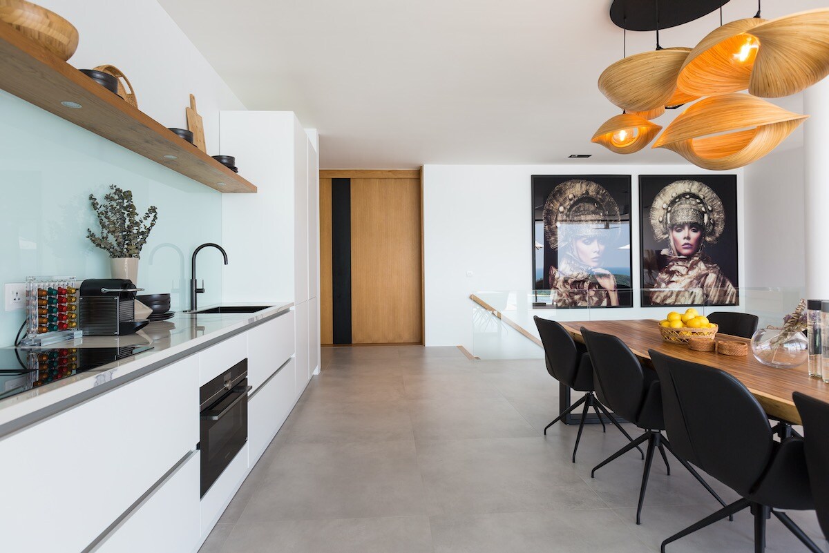 Villa Amylia Ruby's guest kitchen is equipped with a state-of-the-art induction cooking plate. The kitchen is fully equipped with a Siemens micro/oven combination, dishwasher, and family-size Liebherr fridge with freezer. Nespresso coffee maker, blender, and toaster.