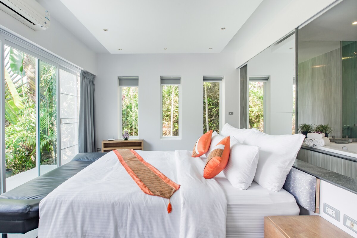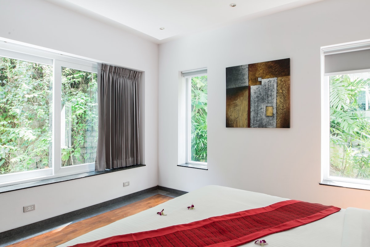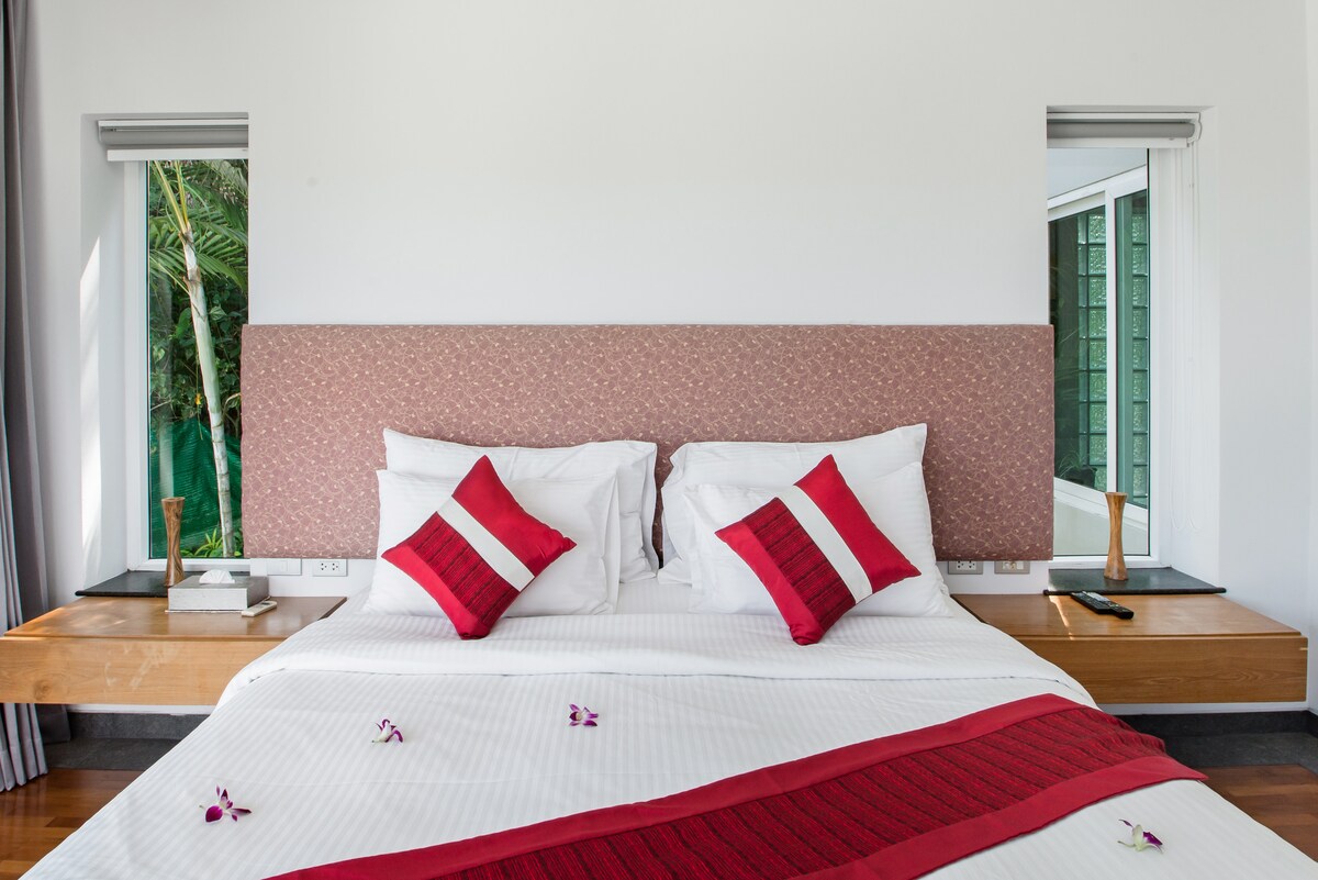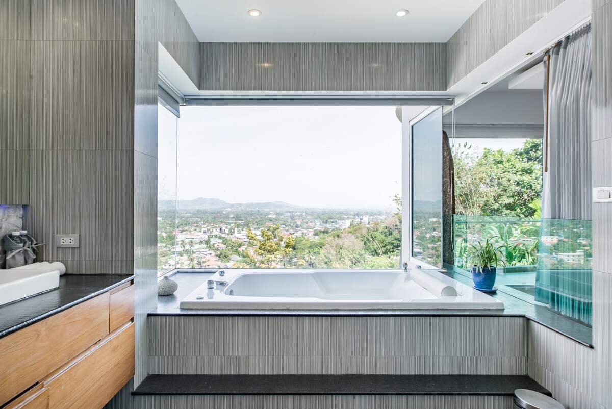 Our stay in Phuket was marked by outstanding service and breathtaking views. The staff's professionalism and warmth added immensely to our experience. Waking up to the serene beauty of Phuket each day was a highlight, and the house's ambiance perfectly complemented its picturesque setting. Minor maintenance issues, like clogged shower heads and some cabinet wear, were noted. These are small areas that, if improved, could elevate the experience further. The location atop a hill provides privacy and splendid views but can be a challenge for some local transport services, especially for those with heavy luggage. Overall, this Airbnb offers a tranquil, beautiful setting with exceptional service. It's ideal for those who value scenic beauty and a peaceful environment.