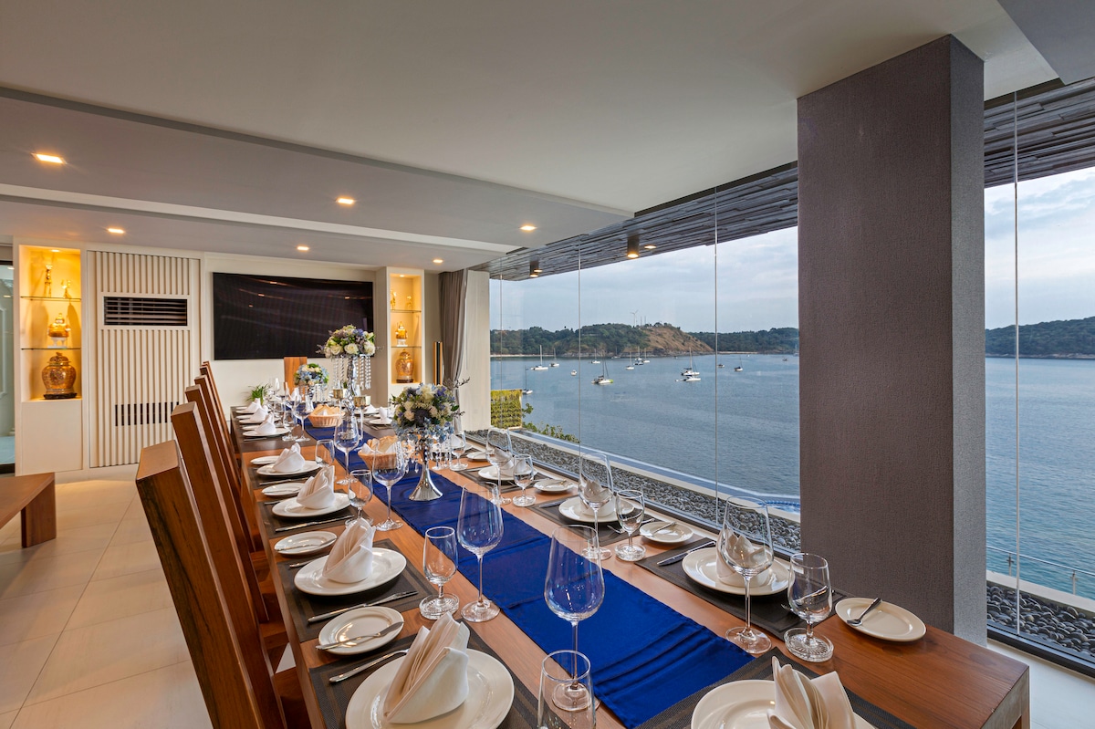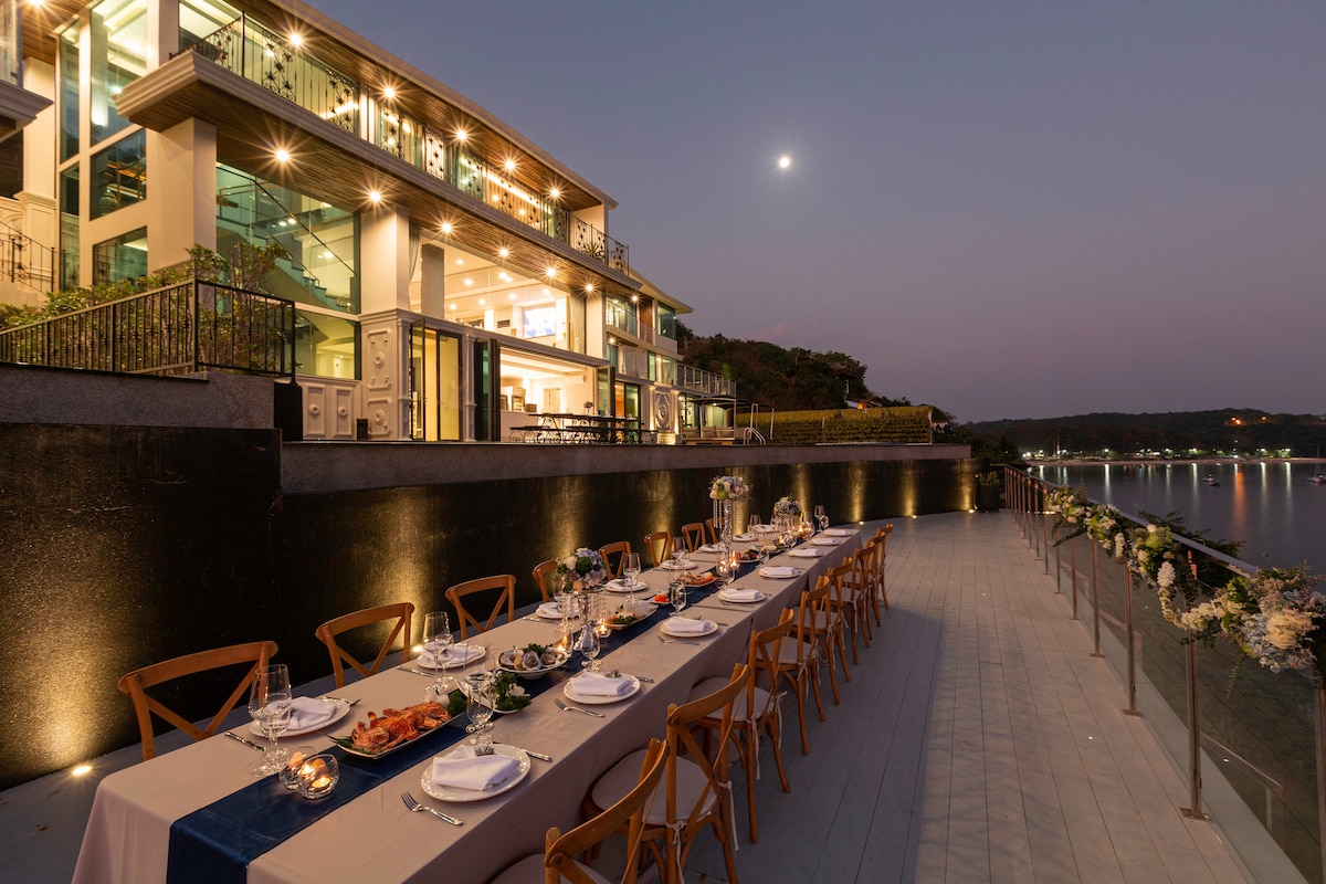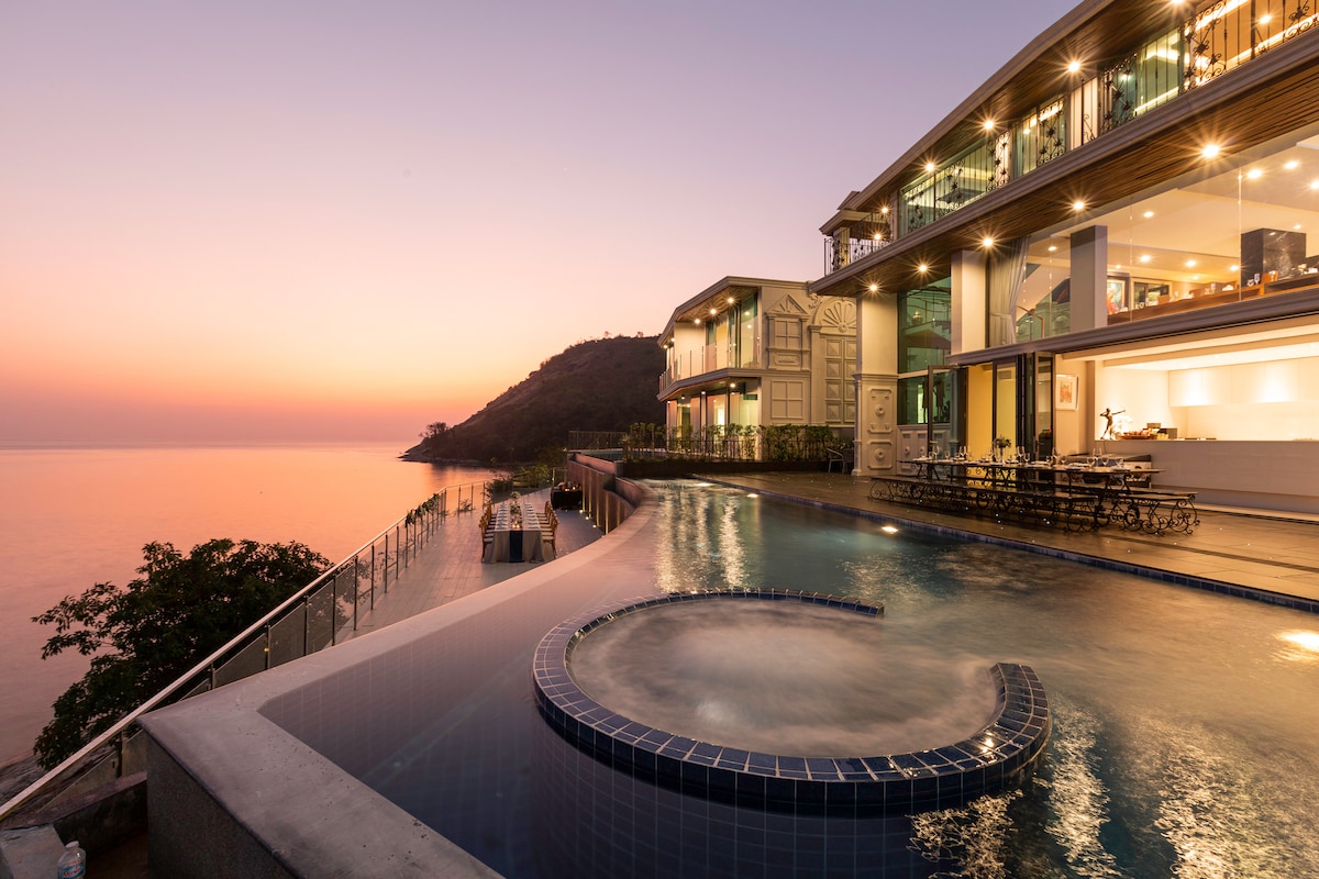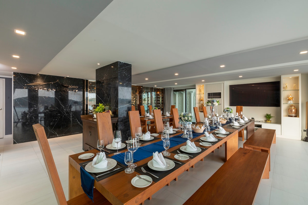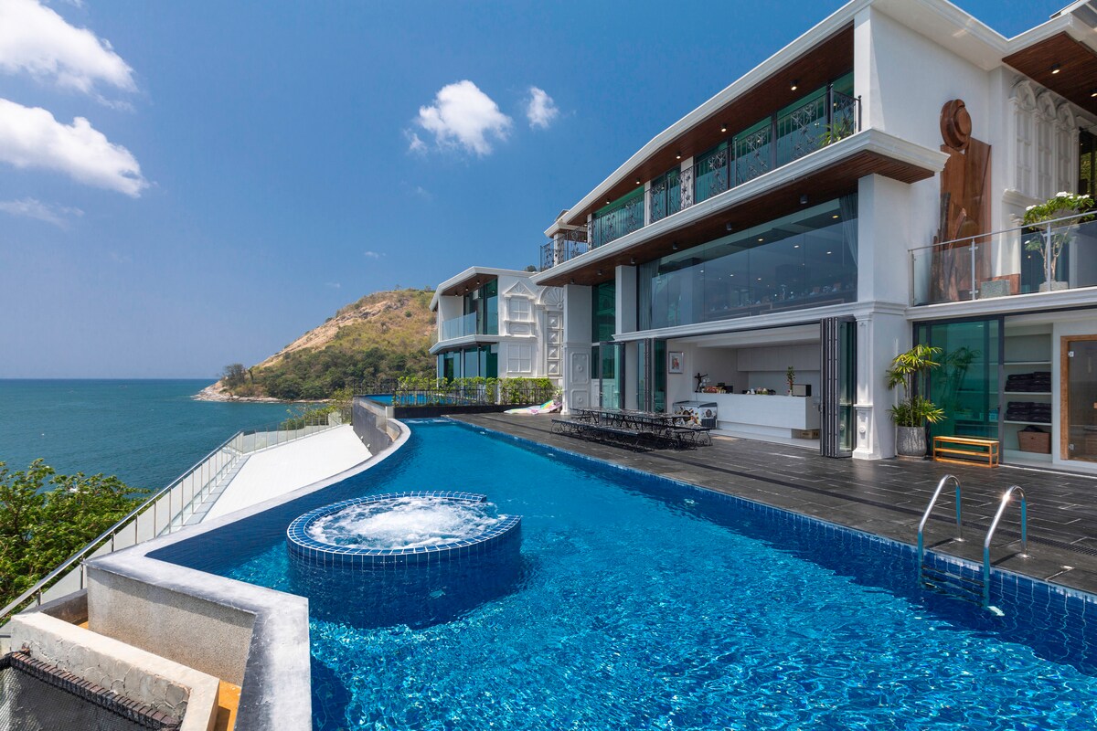 Introducing Villa W Luxury, managed by Inspiring Living Solutions, a breathtaking waterfront retreat featuring 7 bedrooms and over 3,000 sqm of living space. Nestled a mere 2-minute stroll from Ao Sane Beach, it offers mesmerizing sea vistas. Ideal for big families, it comfortably accommodates 14 adults and 4 children. With a 30-metre pool, jacuzzi, and a dedicated staff of 10, every need is catered to.