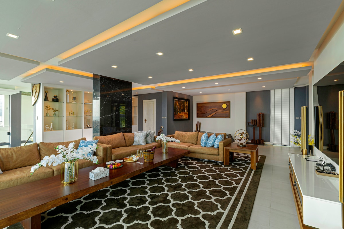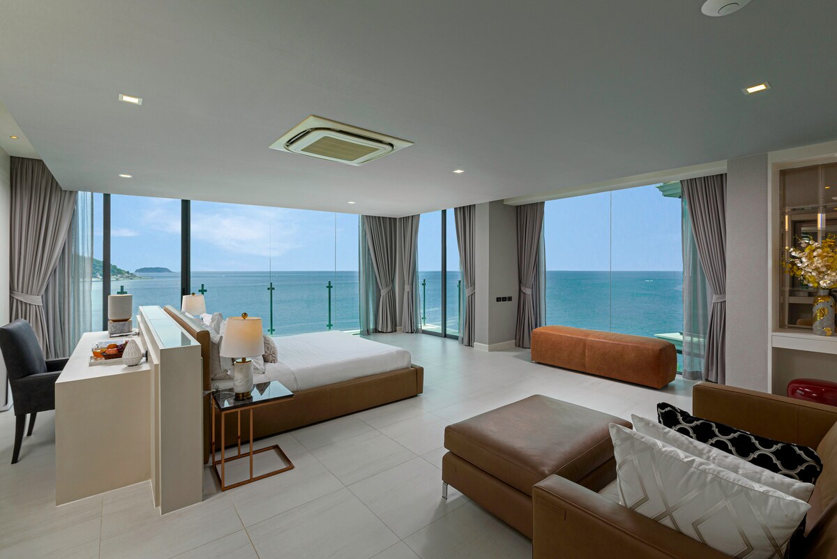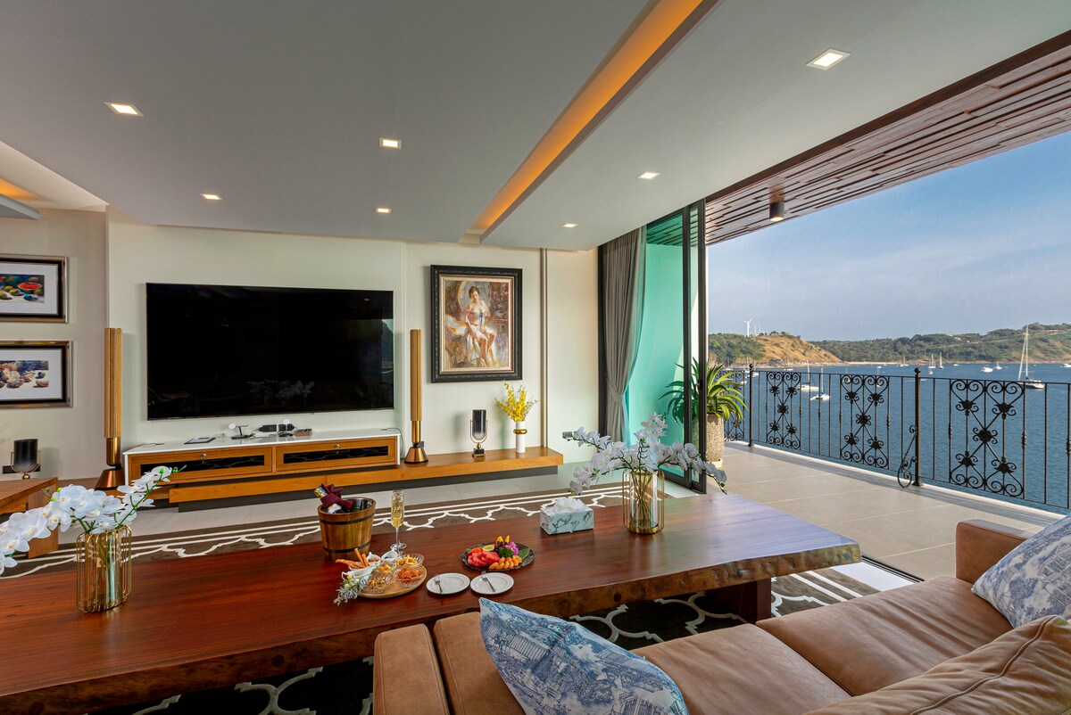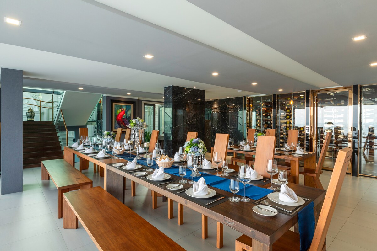 Introducing Villa W Luxury, managed by Inspiring Living Solutions, a breathtaking waterfront retreat featuring 7 bedrooms and over 3,000 sqm of living space. Nestled a mere 2-minute stroll from Ao Sane Beach, it offers mesmerizing sea vistas. Ideal for big families, it comfortably accommodates 14 adults and 4 children. With a 30-metre pool, jacuzzi, and a dedicated staff of 10, every need is catered to.