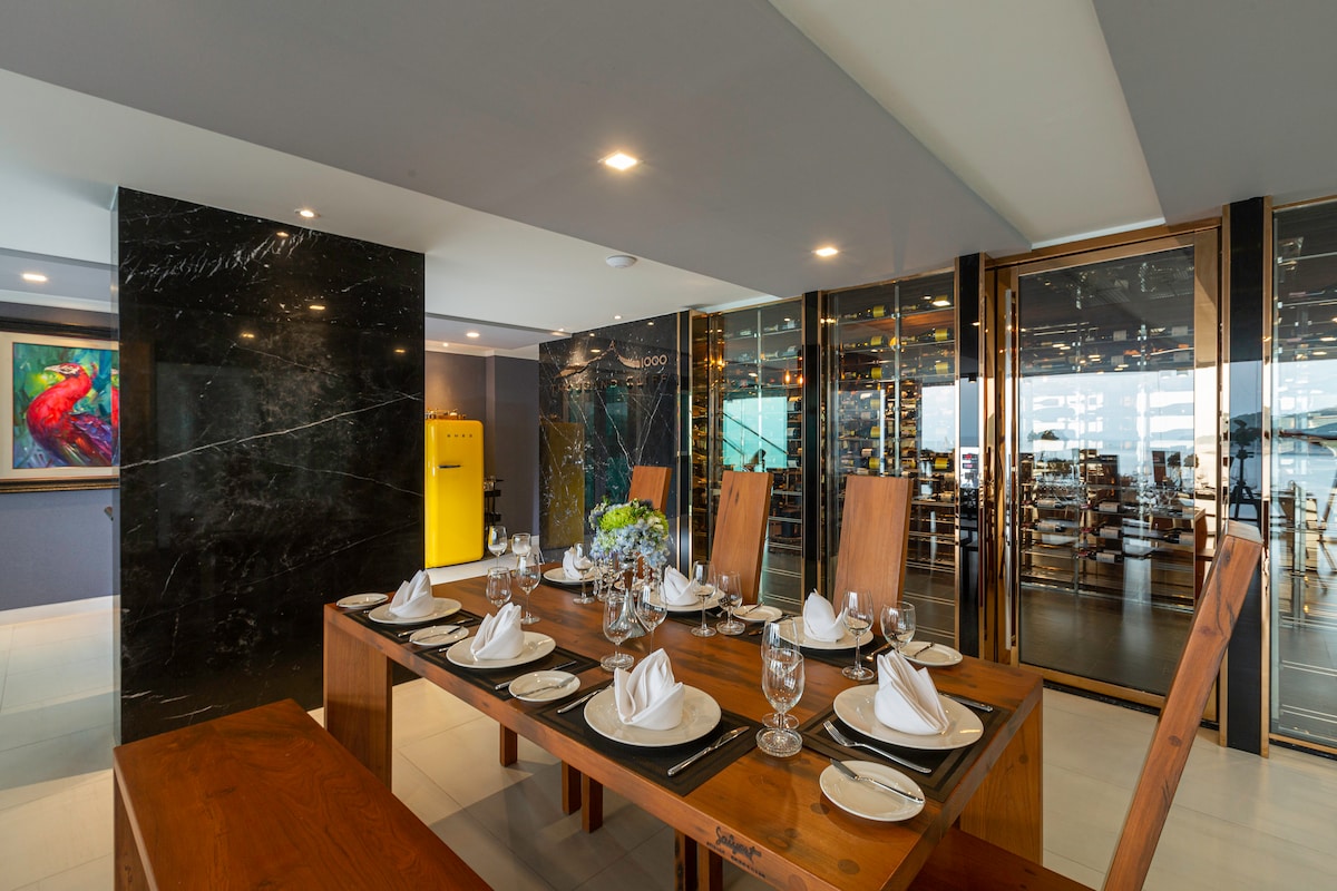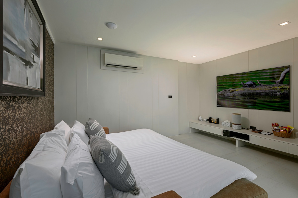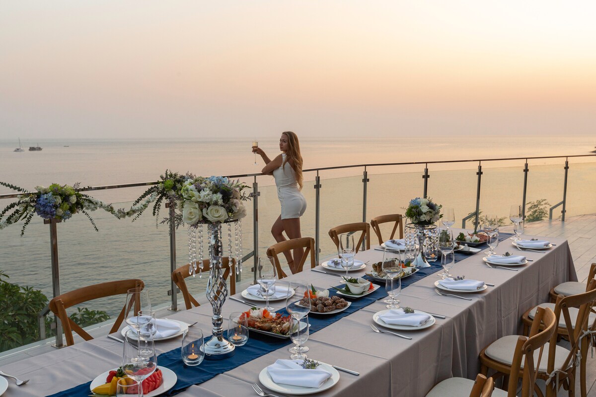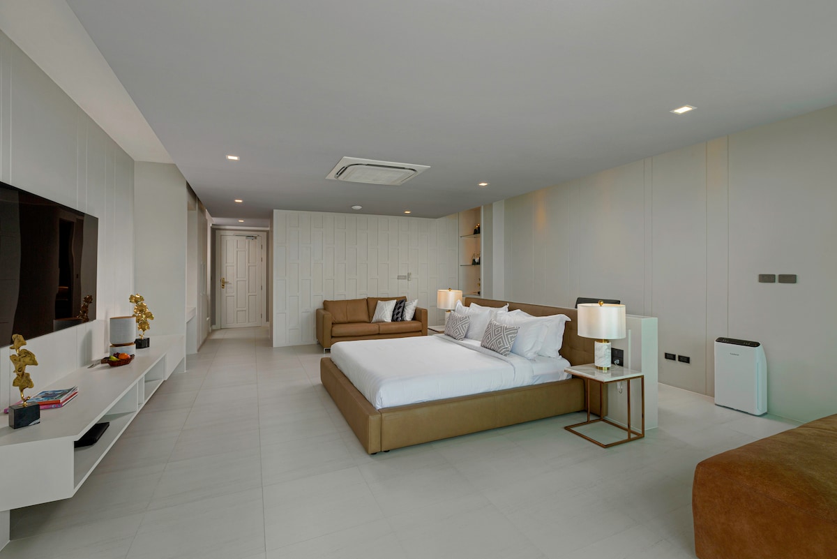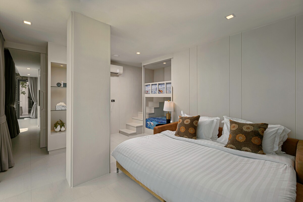 Introducing Villa W Luxury, managed by Inspiring Living Solutions, a breathtaking waterfront retreat featuring 7 bedrooms and over 3,000 sqm of living space. Nestled a mere 2-minute stroll from Ao Sane Beach, it offers mesmerizing sea vistas. Ideal for big families, it comfortably accommodates 14 adults and 4 children. With a 30-metre pool, jacuzzi, and a dedicated staff of 10, every need is catered to.