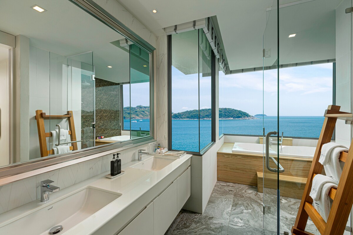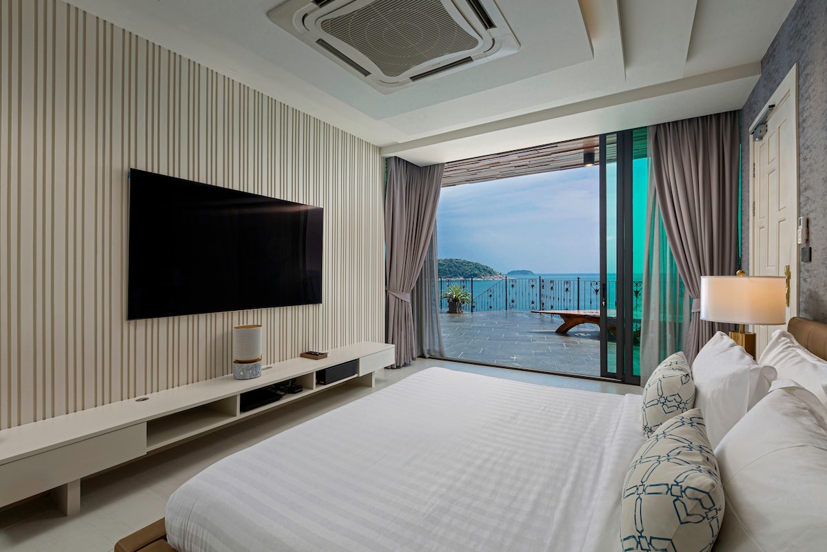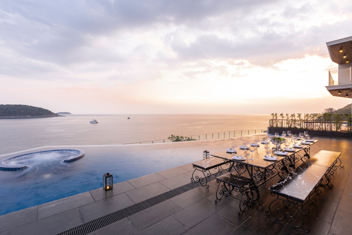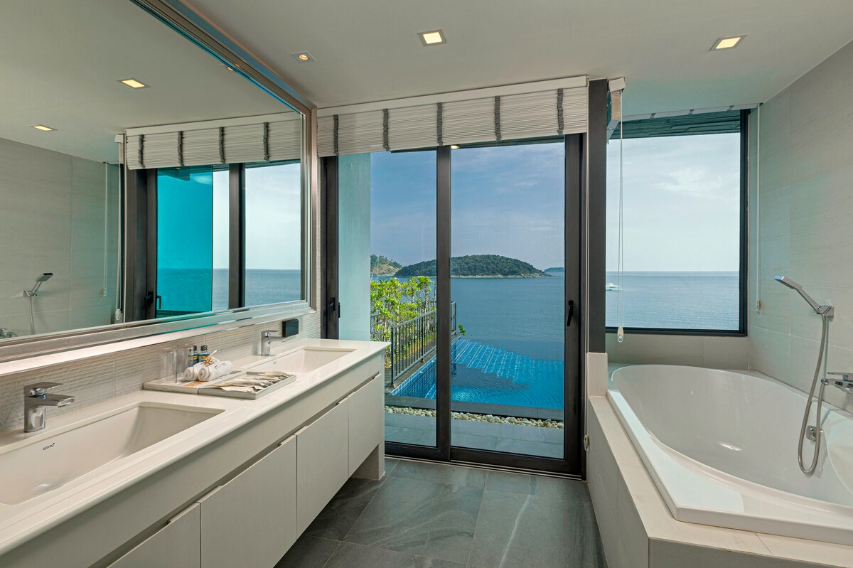 The villa’s third building features four additional bedrooms, with the master bedroom located on the swimming pool level, providing guests with direct pool access. The fourth building features two more bedrooms, a spacious living room, and a media and facilities room with panoramic ocean views on the second floor. Villa Thousand Cliff truly offers guests the ultimate luxury experience and is guaranteed to provide an unforgettable stay in Phuket.