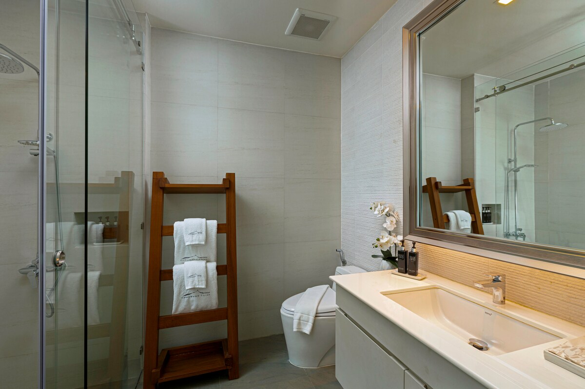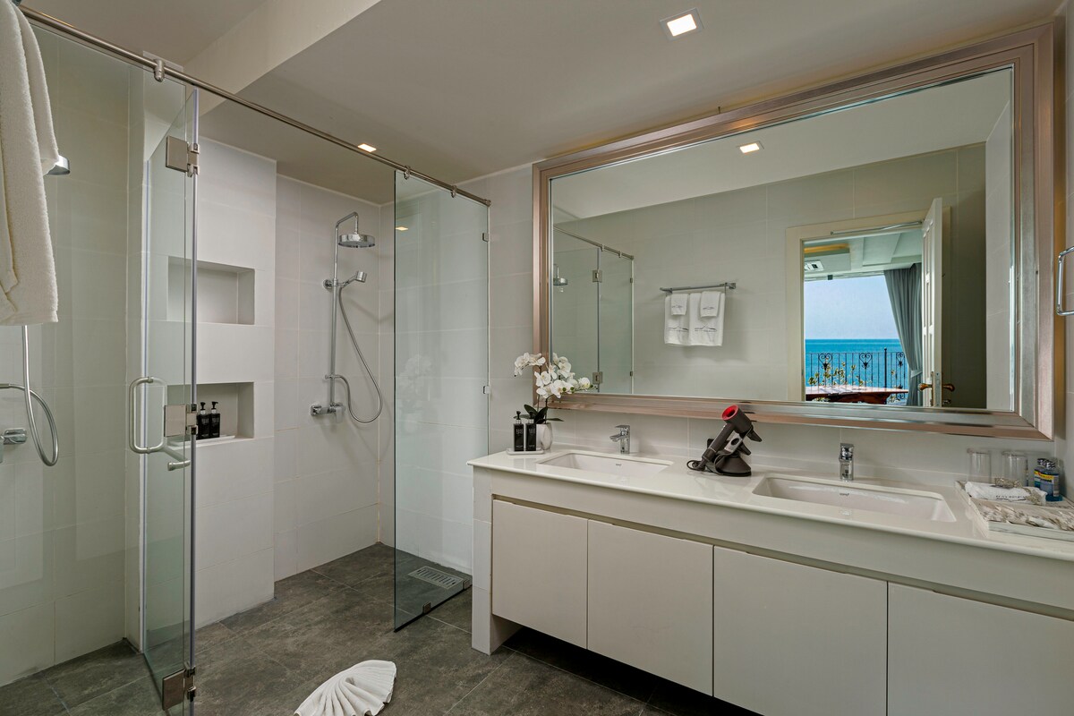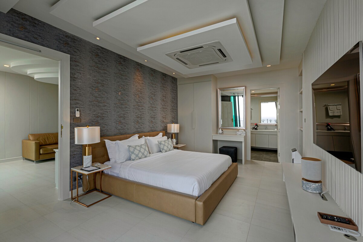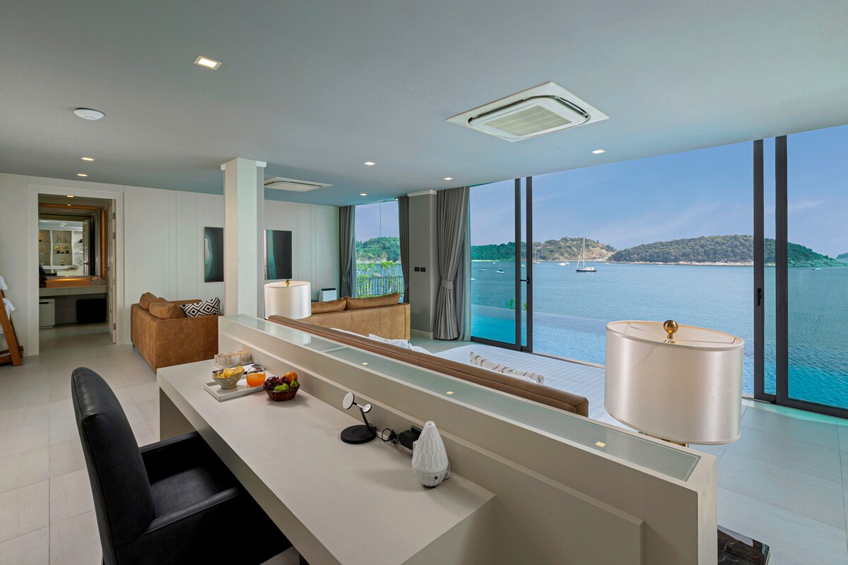 The villa’s third building features four additional bedrooms, with the master bedroom located on the swimming pool level, providing guests with direct pool access. The fourth building features two more bedrooms, a spacious living room, and a media and facilities room with panoramic ocean views on the second floor. Villa Thousand Cliff truly offers guests the ultimate luxury experience and is guaranteed to provide an unforgettable stay in Phuket.