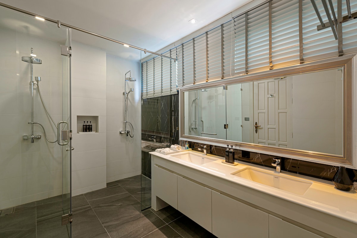 - Ensuite bathroom with his/her rain showers