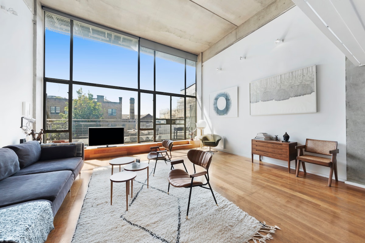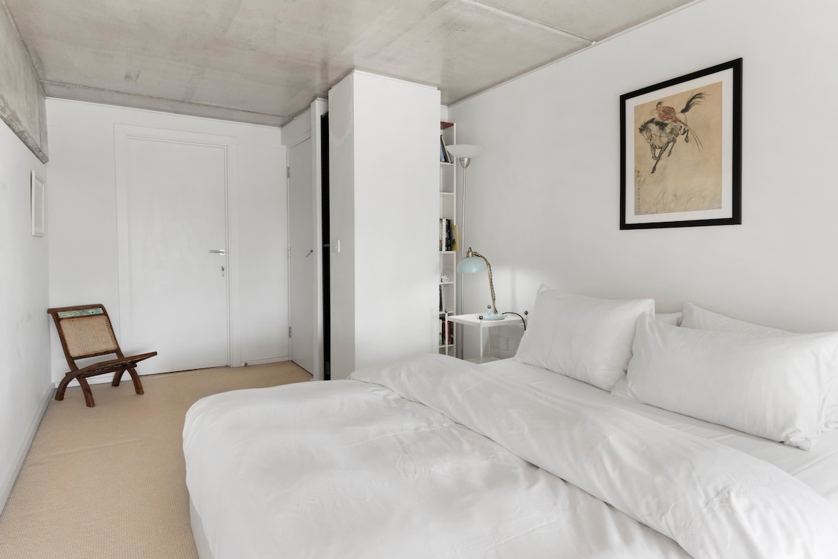A sliding glass wall separates the bedrooms from the living room, so noise insulation between the rooms is not perfect. However, the flat itself overlooks a calm canal, so there is no disturbance from the outside.