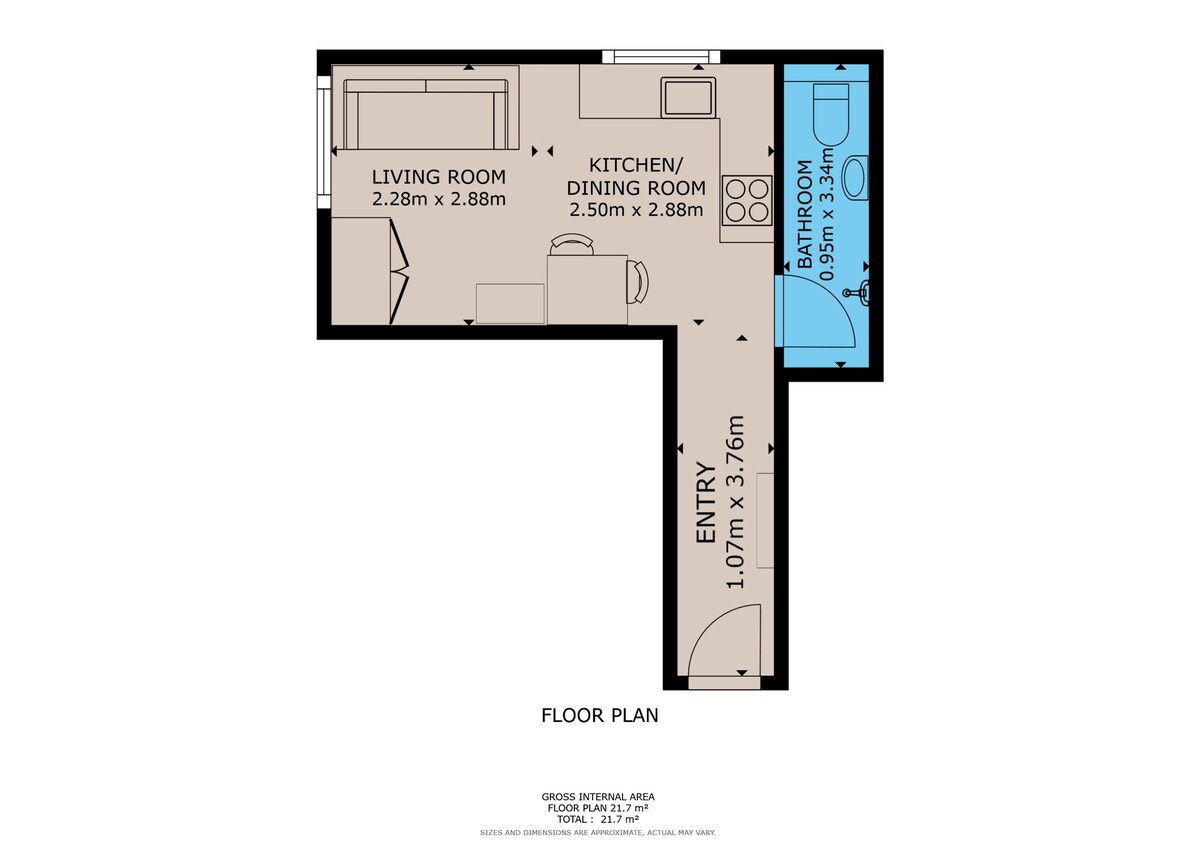 - 1st floor (2nd floor USA), 25 sqm/260 sq ft, private throughout