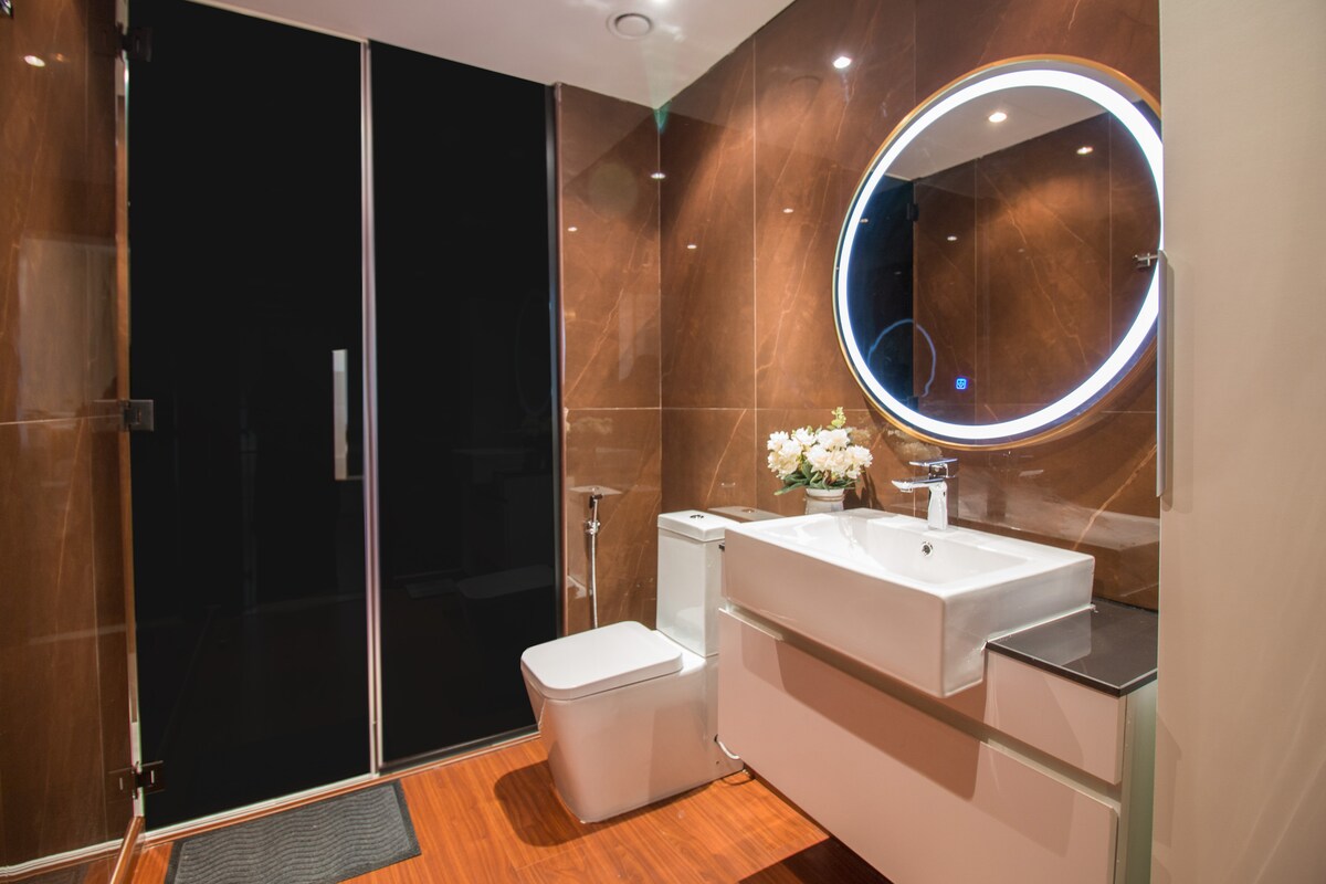 Two clean and modern bathrooms with fresh towels 🧴 and complimentary toiletries.