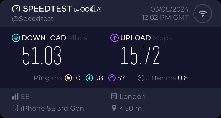 - Fast WIFI (EE 60 Mb/s downloads, 15 Mb/s uploads)
