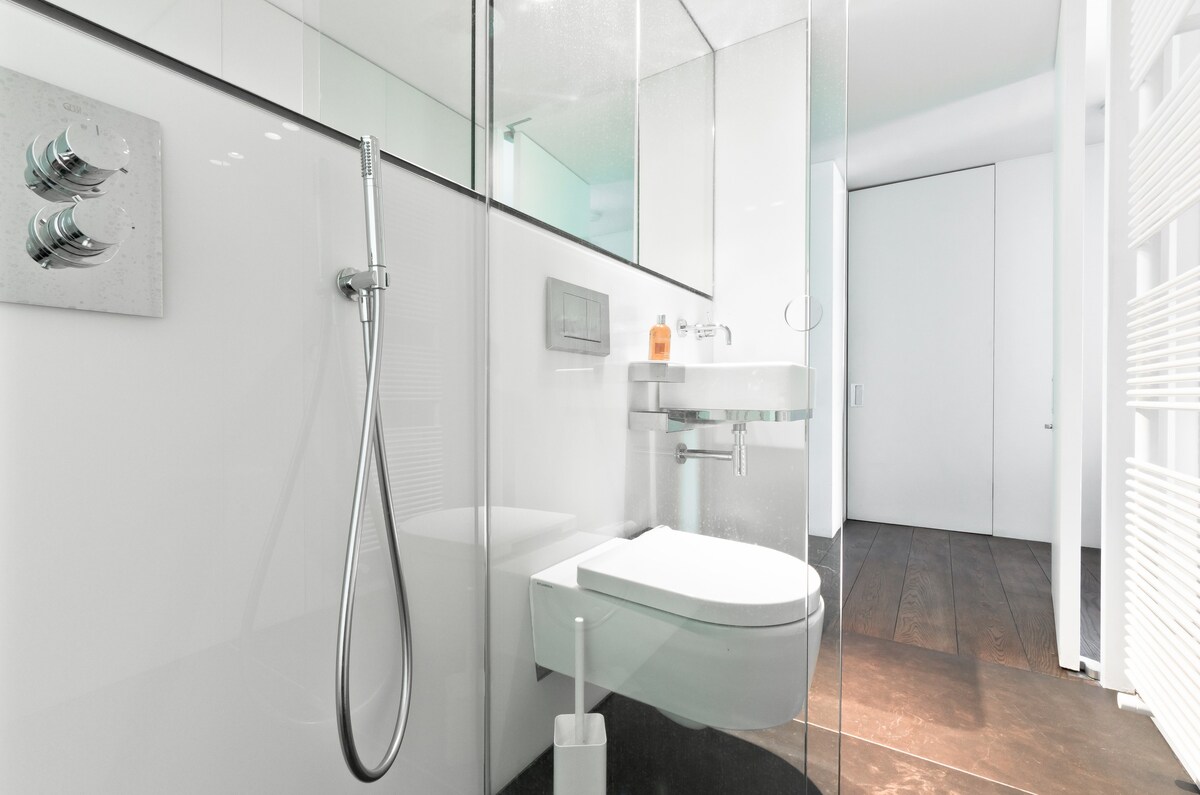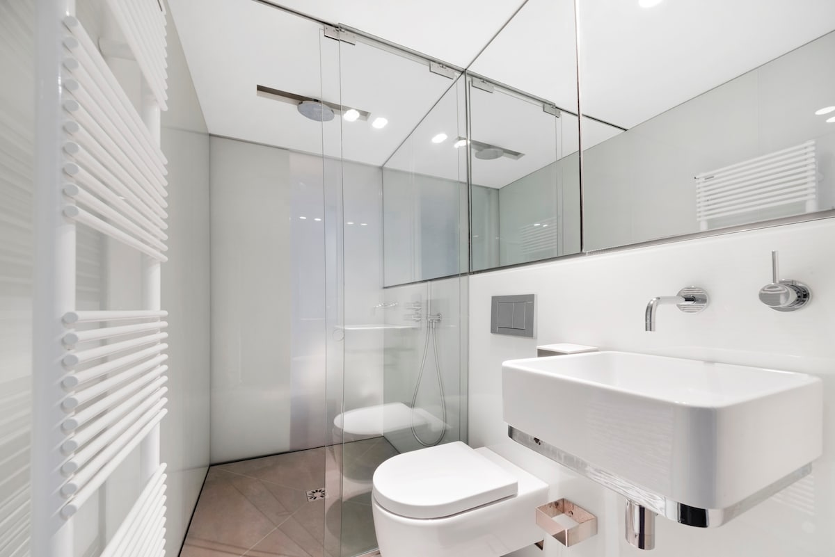 This is a great apartment, definitely a well-designed space. The bedroom was spacious and comfy with use of your own bathroom and good shower. Everything was clean and well presented.