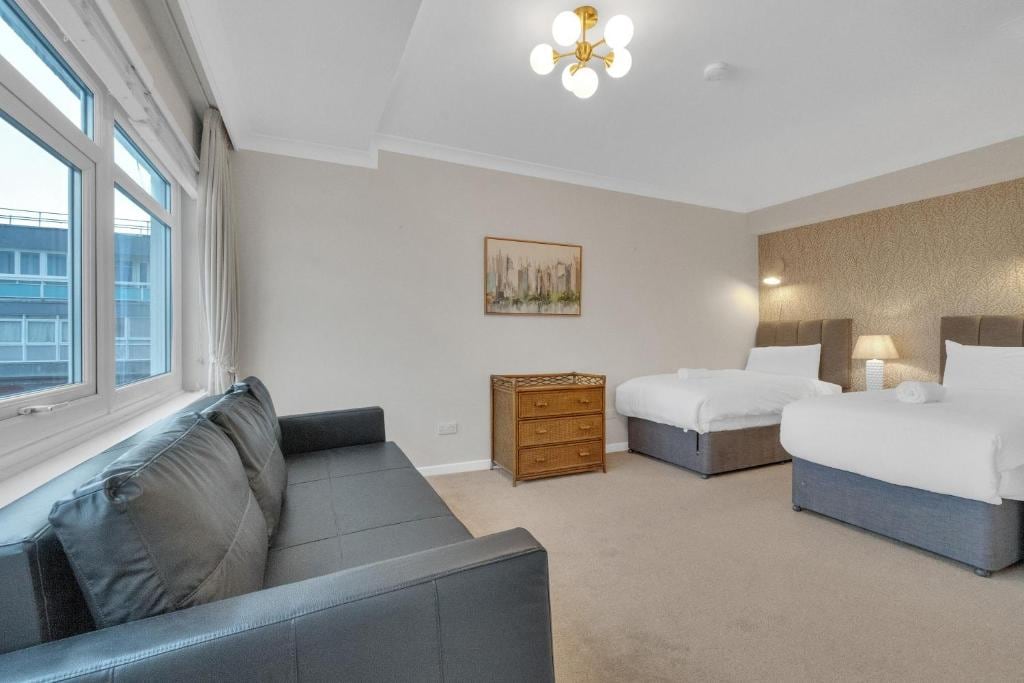 Immerse yourself in Brighton's breathtaking views by reserving this 3-bedroom, 2-bathroom stylish apartment. Situated on the seafront in the DoubleTree by Hilton Hotel (directly opposite the i360), the apartment accommodates up to 8 guests, offering a comfortable retreat as well as direct sea views and sunsets.