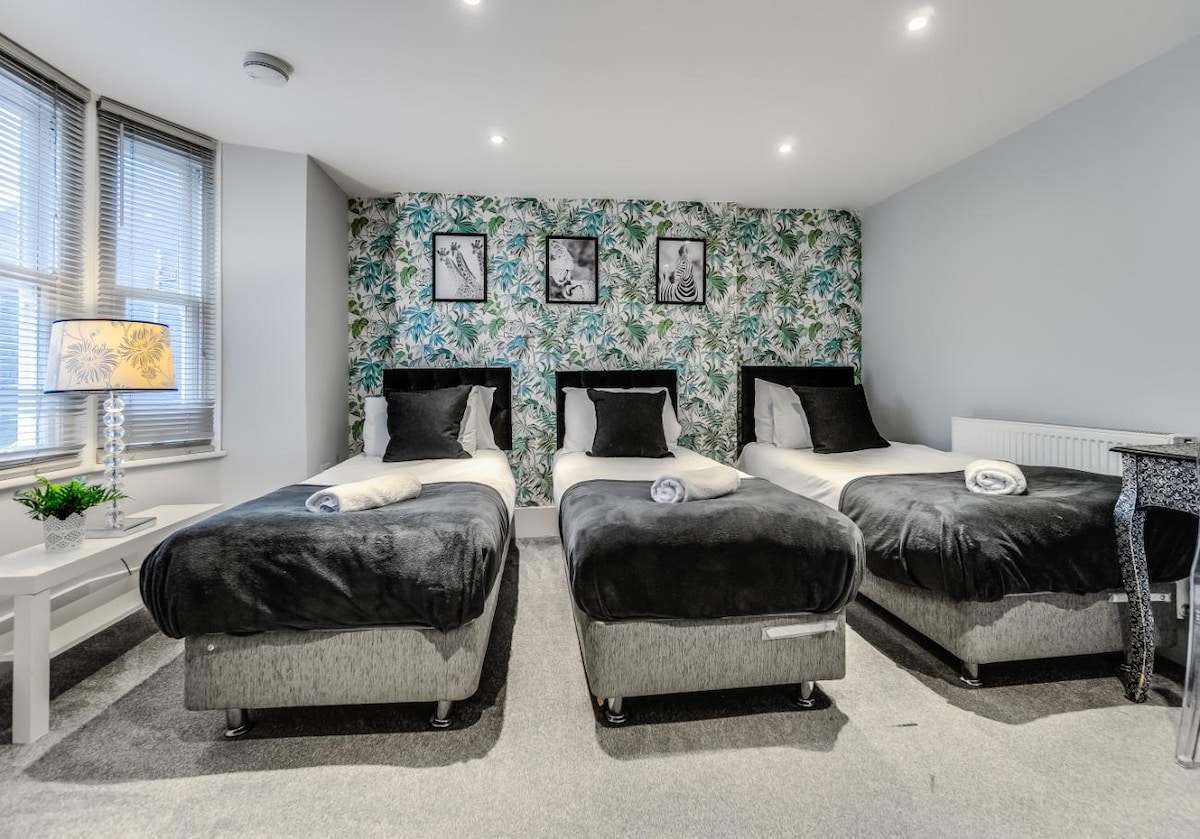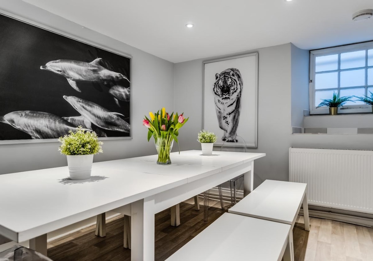 Welcome to Central Pier Place! Our unbeatable location puts all of Brighton's attractions at your fingertips. With 5 bedrooms, 3 showers, and a trendy ambiance, it comfortably accommodates up to 16 guests. Perfect for friends and families. Experience a modern retreat from your new home away from home. Guests can make use of the wifi and smart TV, allowing them to stream their favourite shows and movies from platforms like Netflix and Amazon Prime.Ground Floor