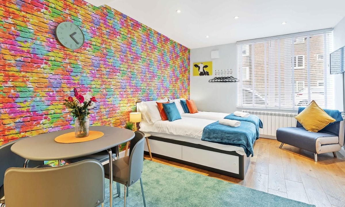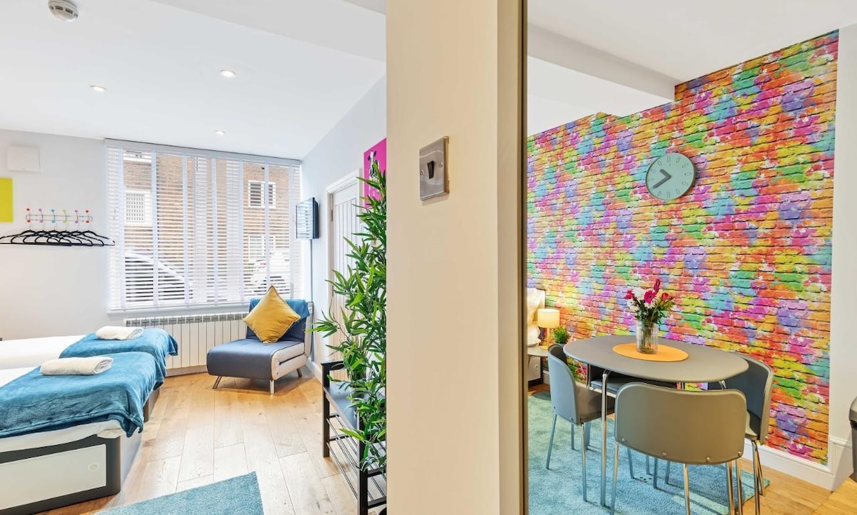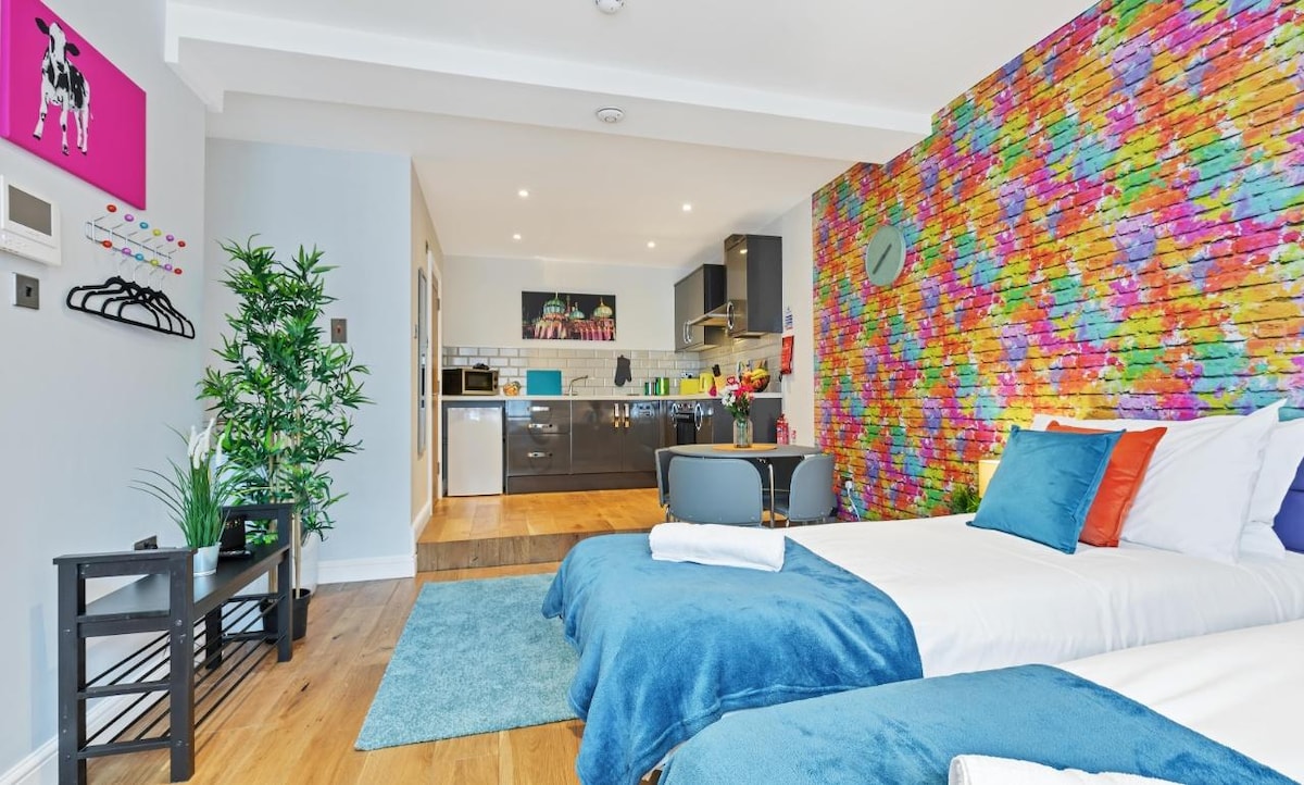 Discover this cheerful studio nestled in the vibrant Kemptown accommodating up to 2 guests. Its prime location allows you to immerse yourself in the dynamic atmosphere with easy access to the beach and amenities right on your doorstep, allowing you to fully experience the vibrant ambiance and coastal beauty of Brighton. Guests can make use of the wifi and smart TV, allowing them to stream their favourite shows and movies from platforms like Netflix and Amazon Prime.Notice: Scaffolding has been installed around the building as part of essential maintenance and improvement works to the property’s exterior. These upgrades will help keep the building looking its best and in great condition. Thank you for your understanding while this work takes place.
