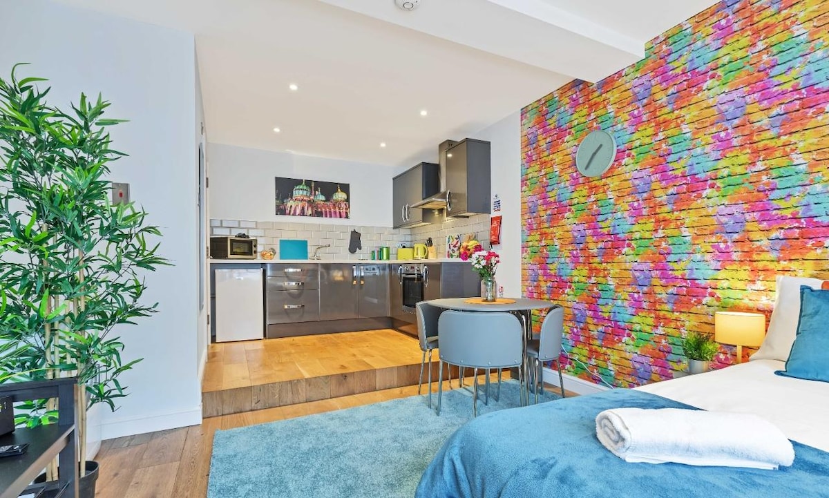 Discover this cheerful studio nestled in the vibrant Kemptown accommodating up to 2 guests. Its prime location allows you to immerse yourself in the dynamic atmosphere with easy access to the beach and amenities right on your doorstep, allowing you to fully experience the vibrant ambiance and coastal beauty of Brighton. Guests can make use of the wifi and smart TV.