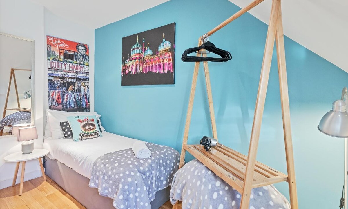 Immerse yourself in the city's energy at the Majestic Mews first floor apartment.Enjoy privacy in the gated Mews, just a short walk from the bustling North Laine. With free parking for one car just a 5 minute walk away, explore the city at your pace. Sleeping up to 6 guests, Majestic Mews combines modern comforts and a prime location for an unforgettable stay in Brighton. Guests can make use of the wifi and smart TV, allowing them to stream their favourite shows and movies from platforms like Netflix and Amazon Prime.