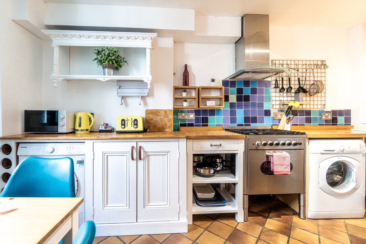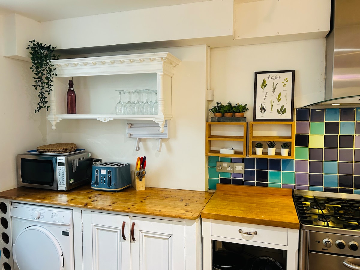 Kitchen/Diner - The kitchen/diner seats up to 4 guests. Facilities include an oven, hob, washing machine, dryer, microwave and fridge freezer - all set in a wonderful traditional cottage theme.