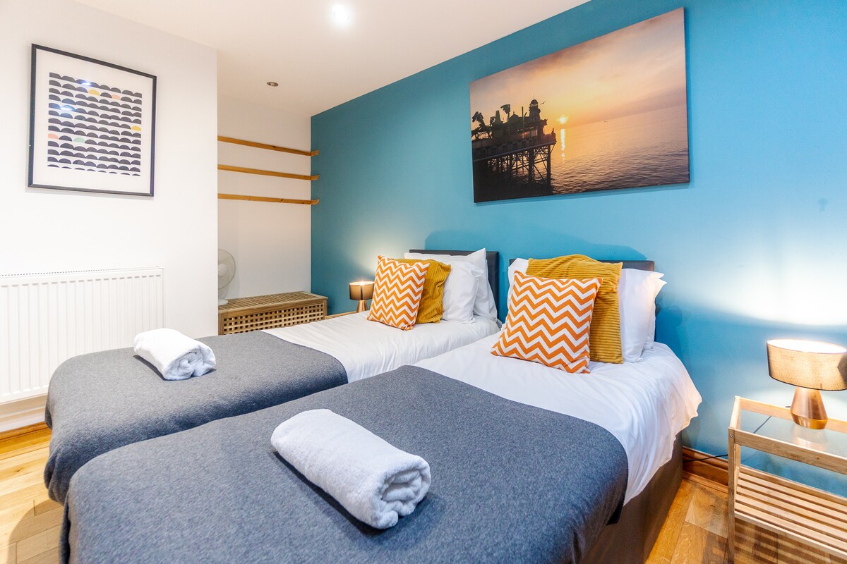 This apartment is perfect if you want a stay in brighton for a family... very close to the pier and a short walk into the main town ... bedrooms good size and comfortable beds feel it could do with an ensuite or another shower one bathroom was slighlty annoying when all trying to get ready, kitchen was brilliant for cooking meals the big oven hob and space to cook was a nice touch and big table upstairs to all eat around, parking not a problem if you have one car bit of a squeeze but nothing a good driver cant handle (i drive a grand sport insignia wide and long) all in all a great stay .... one issue and this is the only issue which i private messaged the company about previous to this review is the pipework noise or vibration that is a constant very irritating if your a light sleeper it will keep you up you cannot hear it over tv noise or talking but when your trying to sleep it was getting annoying .... dont let this sway you from booking nobody else i can see has noticed it or reviewd about it but im sure the company will look into it all in all a great stay