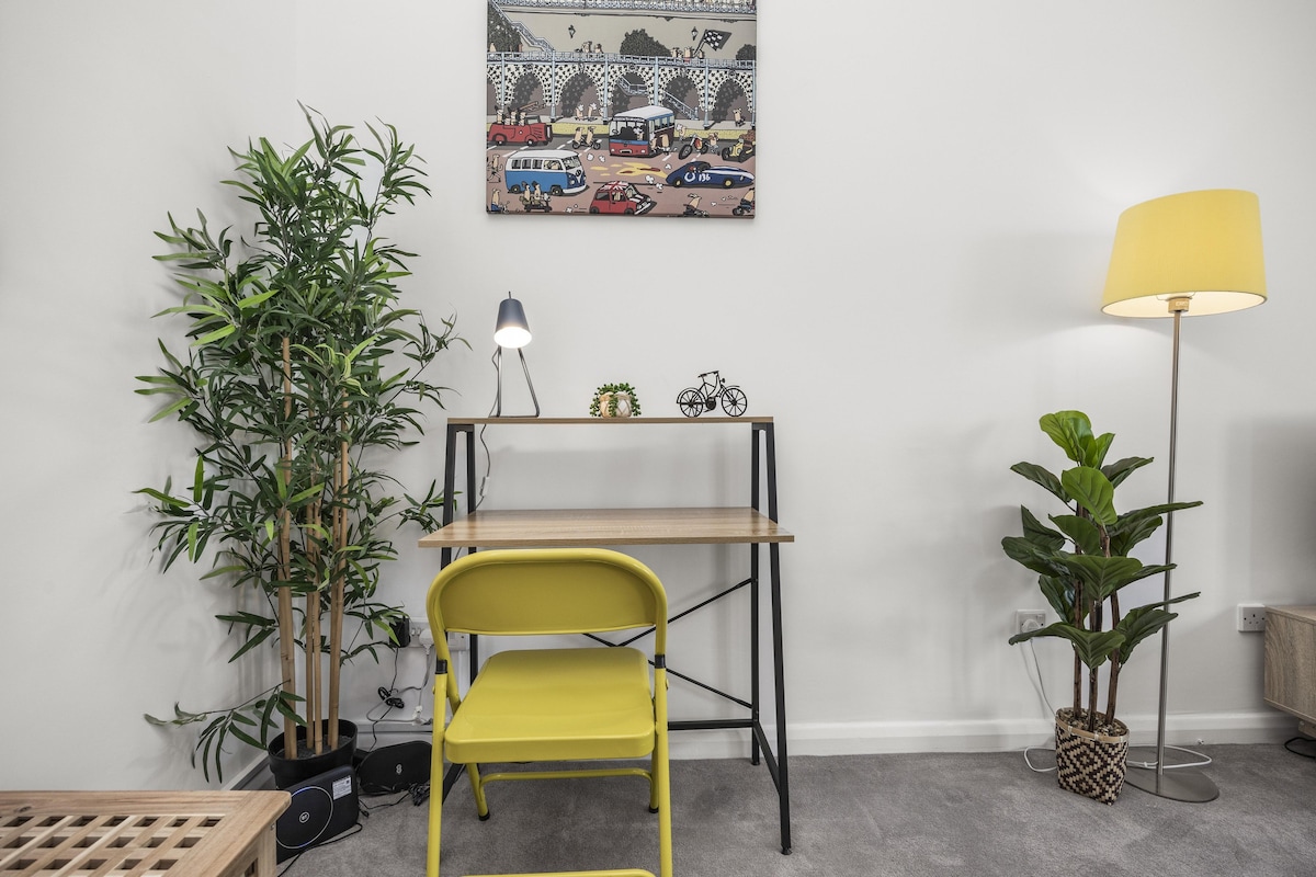 You’ll find the sociable and light living room set up with a Smart TV and double sofa bed not yet made up as a bed, making it a lovely space for chilling out, getting together for a few drinks or catching up on the events of the day. If you prefer, you can simply relax and watch a movie on the TV or make use of the designated work space.