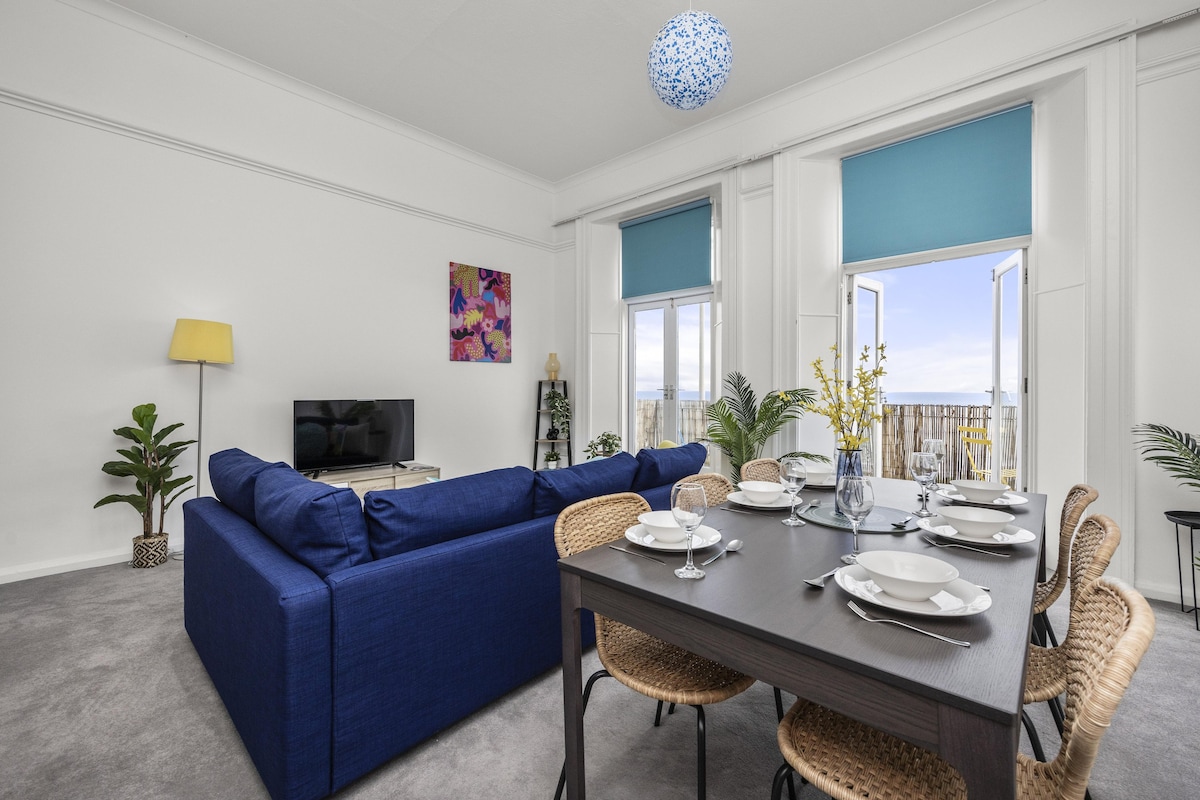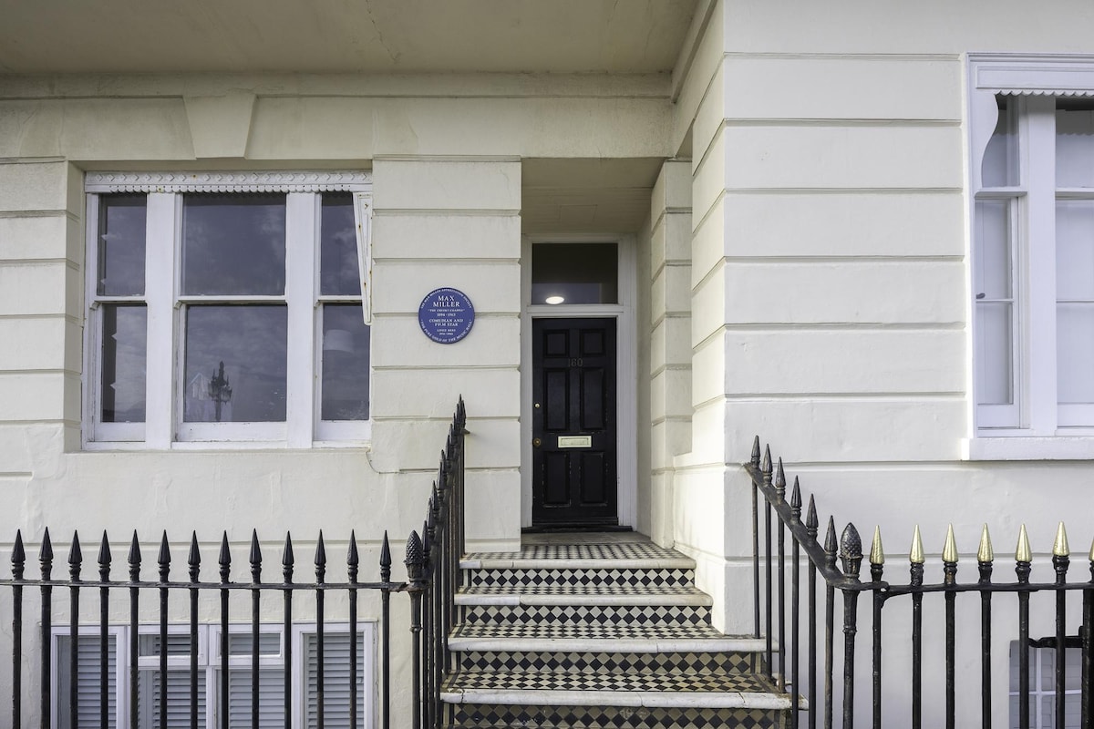 With gorgeous, direct sea views and just a 1 min stroll to the beach, this two bedroom apartment is perfect for couples, families or working professionals with a double sofa bed in the living area too. The spacious, bright living room with incredibly high ceilings includes a designated work space and Smart TV for streaming your favourite platforms, a dining area seating up to 6 guests a fully equipped kitchen and your own private balcony. Just a stone's throw away from the seafront, Brighton Pier and city centre, this is the perfect Brighton getaway!The original Cheeky Chappie lived in this property in the 1940s & 50s at the height of his fame. Known professionally by his stage name Max Miller and billed as The Cheeky Chappie, this legendary entertainer was an English comedian often considered the greatest stand-up of his generation and a blue plaque marks the entrance to this property with his name.