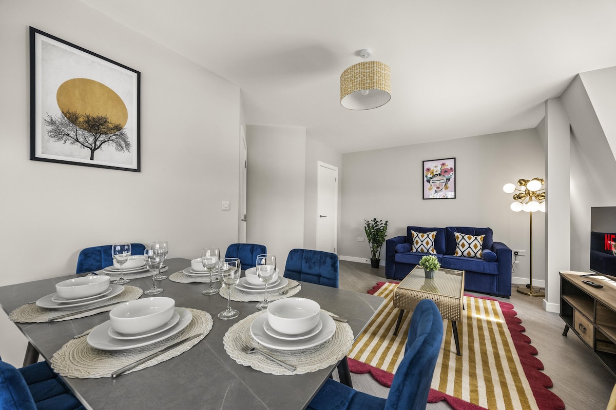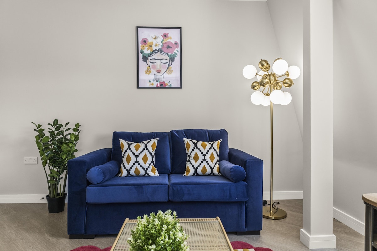 The living area has a tonne of natural daylight pouring in and the fully equipped kitchen has a washer/dryer, microwave, oven, kettle plus plenty of cookware, glassware, crockery and cutlery so you can easily cook up a brunch or lunch for everybody. In addition to this we offer complimentary tea and coffee, salt and pepper - so please help yourself. The dining table seats up to 6 guests. You’ll find the sociable and light living room set up with a Smart TV and double sofa bed not yet made up as a bed, making it a lovely space for chilling out, getting together for a few drinks or catching up on the events of the day. If you prefer, you can simply relax and watch a movie on the TV.