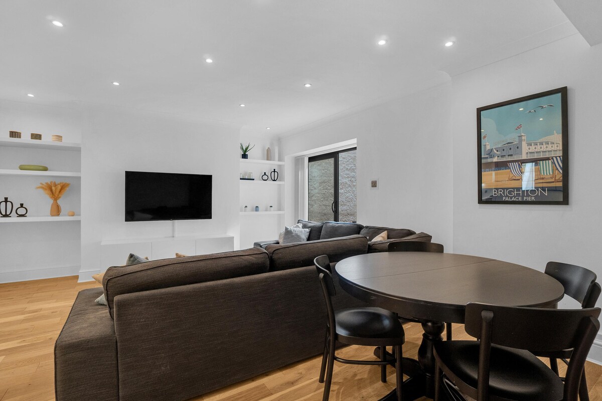 Perfectly situated Lower- Ground Floor Flat (steep stairs), with the luxury of a private patio moments from Brighton seafront, Kemptown Coastal offers the best of both worlds. Explore the bustling energy of Brighton's city centre or escape to the nearby Marina, where you can indulge in leisurely strolls along the waterfront. Accommodating up to 6 guests in two double bedrooms. Experience a modern retreat from your new home away from home. Guests can make use of the wifi and smart TV, allowing them to stream their favourite shows and movies from platforms like Netflix and Amazon Prime.The Space