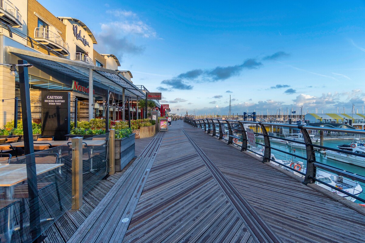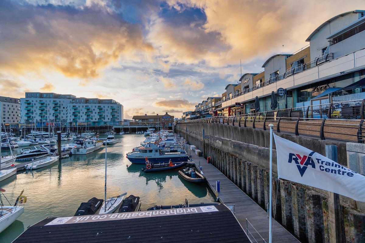 Ever wondered what it’s like to have a luxury room on a cruise ship – but with all the comforts and conveniences of solid ground? Welcome to On The Water 4, a truly unique and boutique holiday home floating right in the heart of Europe’s largest marina. This is more than just a place to stay – it’s an experience you simply won’t find anywhere else in the world. Set on the sought-after West Jetty of Brighton Marina, this petite, charming mezzanine apartment offers stunning panoramic views over the boats and water – best enjoyed from your very own private terrace. Whether you're sipping a morning coffee or toasting the sunset, the ever-changing waterscape provides a peaceful and picturesque backdrop. Step out of your front door and you’re moments from a buzzing mix of restaurants, bars, cafés, boutique shops, a cinema, bowling, and even a casino. And when you're ready to explore more, Brighton's vibrant city centre is just a short bus or taxi ride away.Perfect For