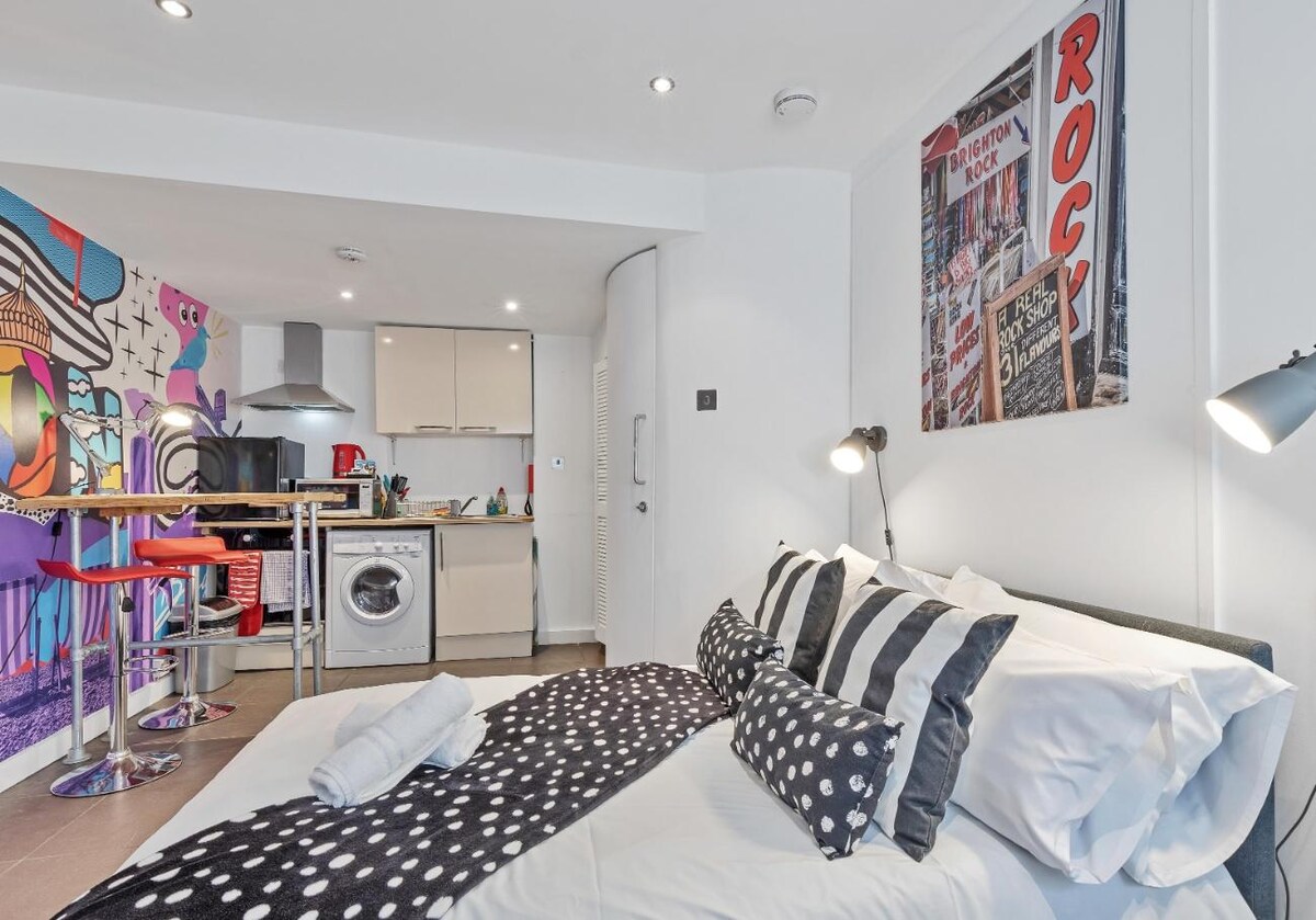 Equipped with free wifi, flatscreen TV, breakfast bar and bar stools for eating your meals and a toilet & washbasin, this really is an amazing space for a short or extended break in Brighton, within walking distance of Brighton train station, 10 minutes away.