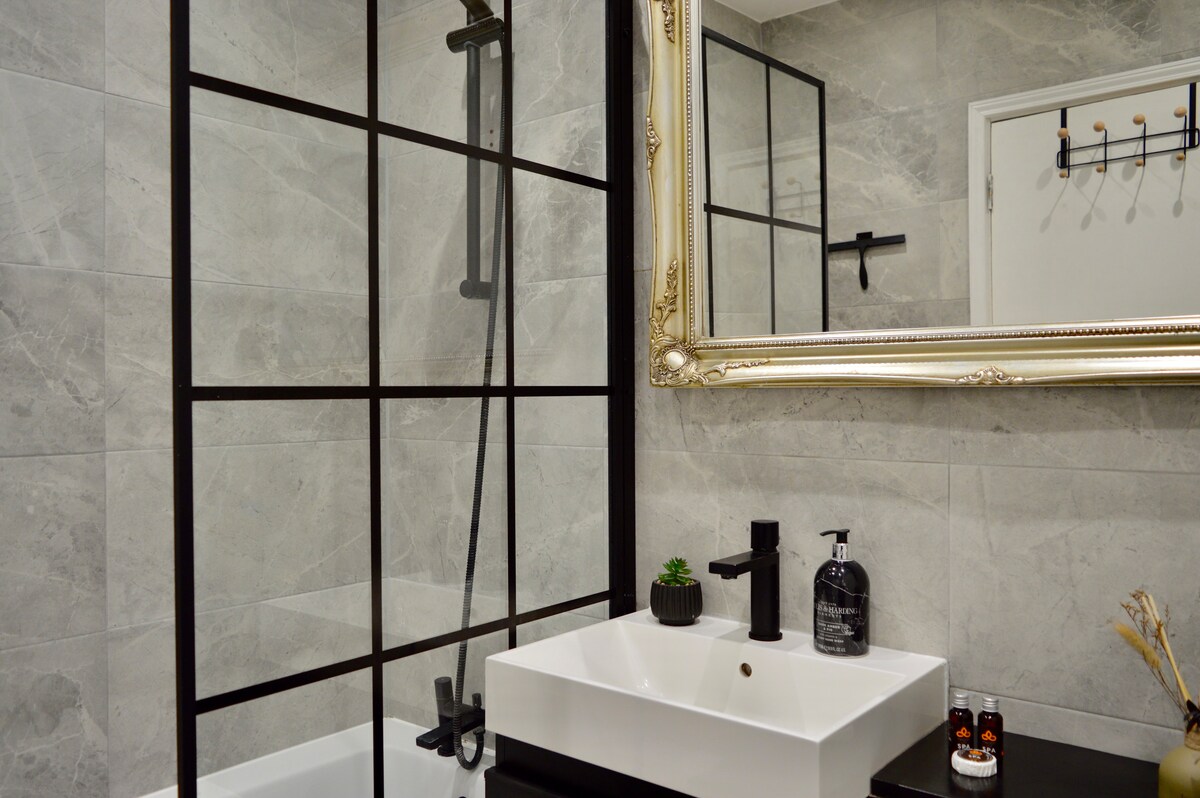 ✔ Modern Bathroom – Includes both a bath and shower for flexibility.