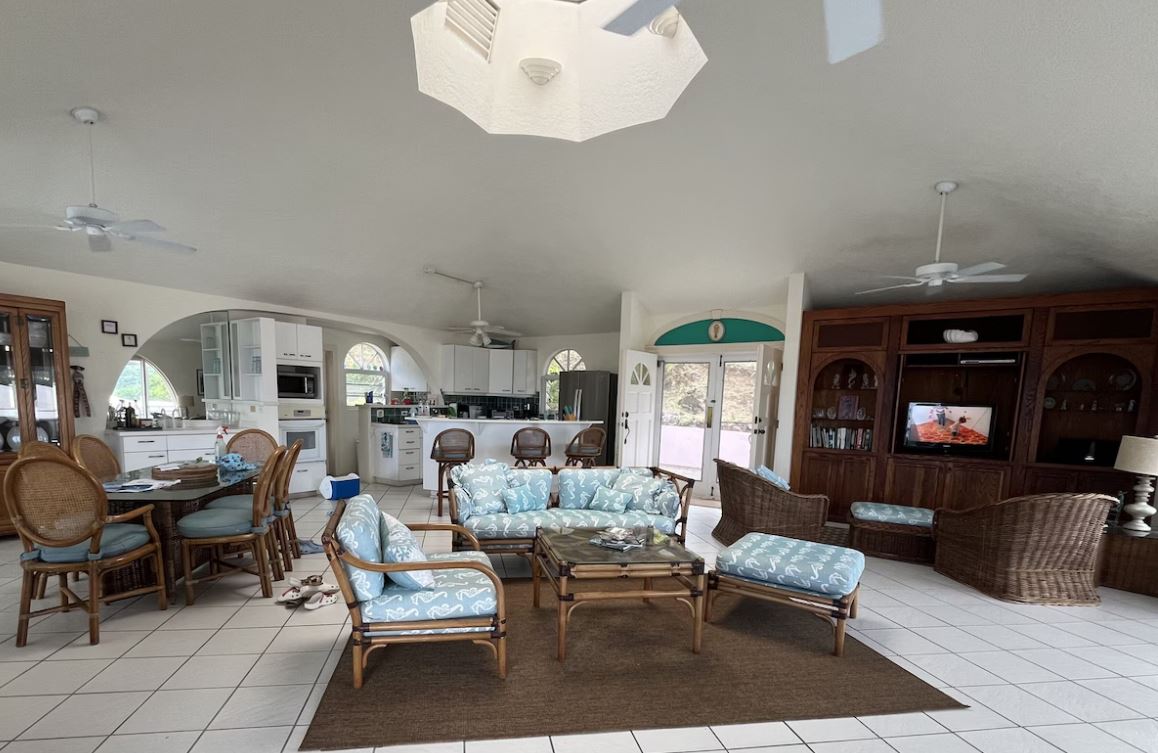 We were looking forward to our St Croix experience. We knew it was going to be warm, but it was stifling hot inside the house when we arrived. Then we asked about air conditioning and we were told only bedrooms had air and the cross winds would cool the house. The house is not situated so you get the cross winds the host told us we could get. It was hard to cook at the house because it was so hot. The house needs updating.