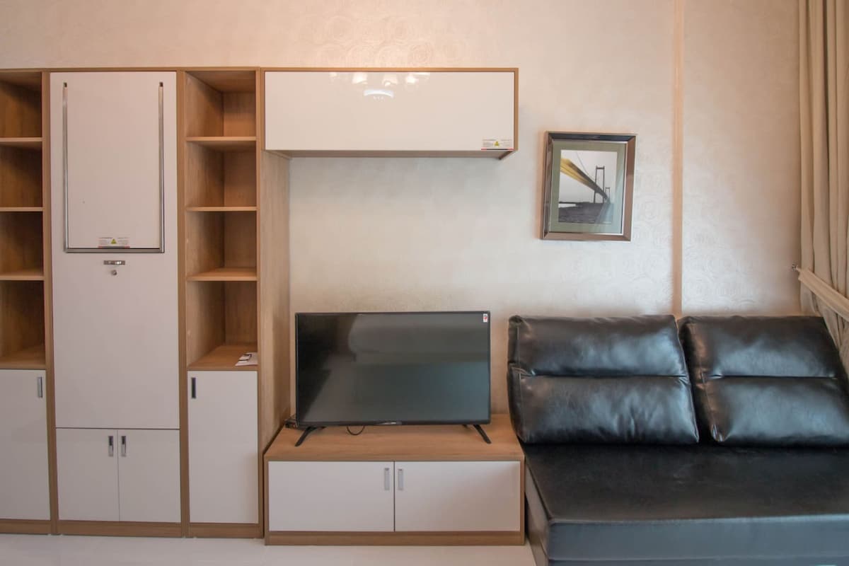 Living Area: Modern and cozy space with a plush sofa, flat-screen TV 📺, and tasteful decor to make you feel at home.