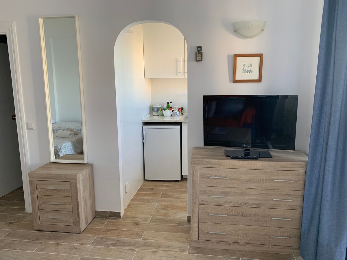 This is a studio flat for 2 on the 5th floor of the A block.West facing, afternoon sun, terrace for al fresco dining or sunbathing with nice open views to the sea, pool and tropical gardens.