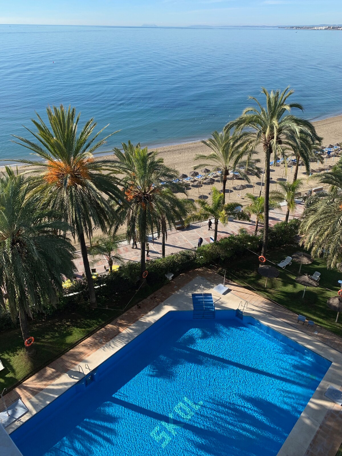 The Skol Apartments Marbella are self catering apartments set on the very beachfront on central Marbella boardwalk with all services and amenities nearby. We offer a wide range of studios, 1-2-3 bedrooms apartments located on various floors and different aspects but all with great views of the beach, pool, park, garden and sea.They're fully furnished, fitted and equipped: air con, wifi, washing machine and a full kitchen, balcony with sea views, welcome pack and 24/7 reception and attention.