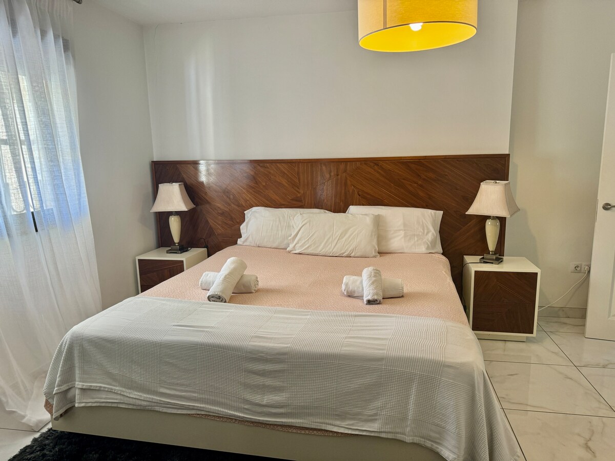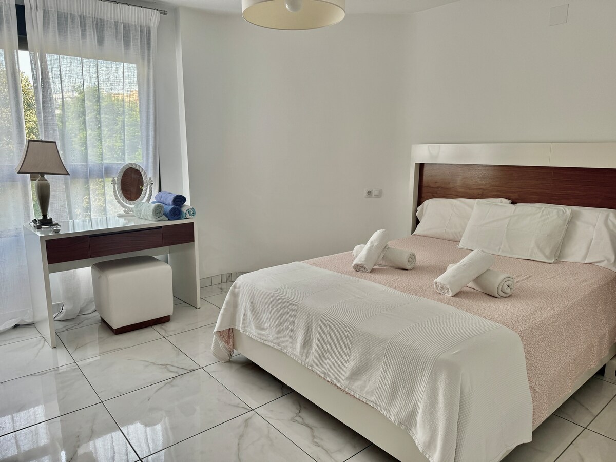 Fully fitted and equipped with Smart TV, Fibre Optic WIFI, air conditioned.Both Master Bedroom with super king size bed and en-suite bathroom