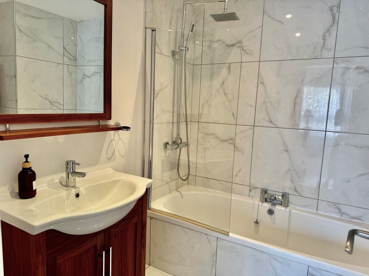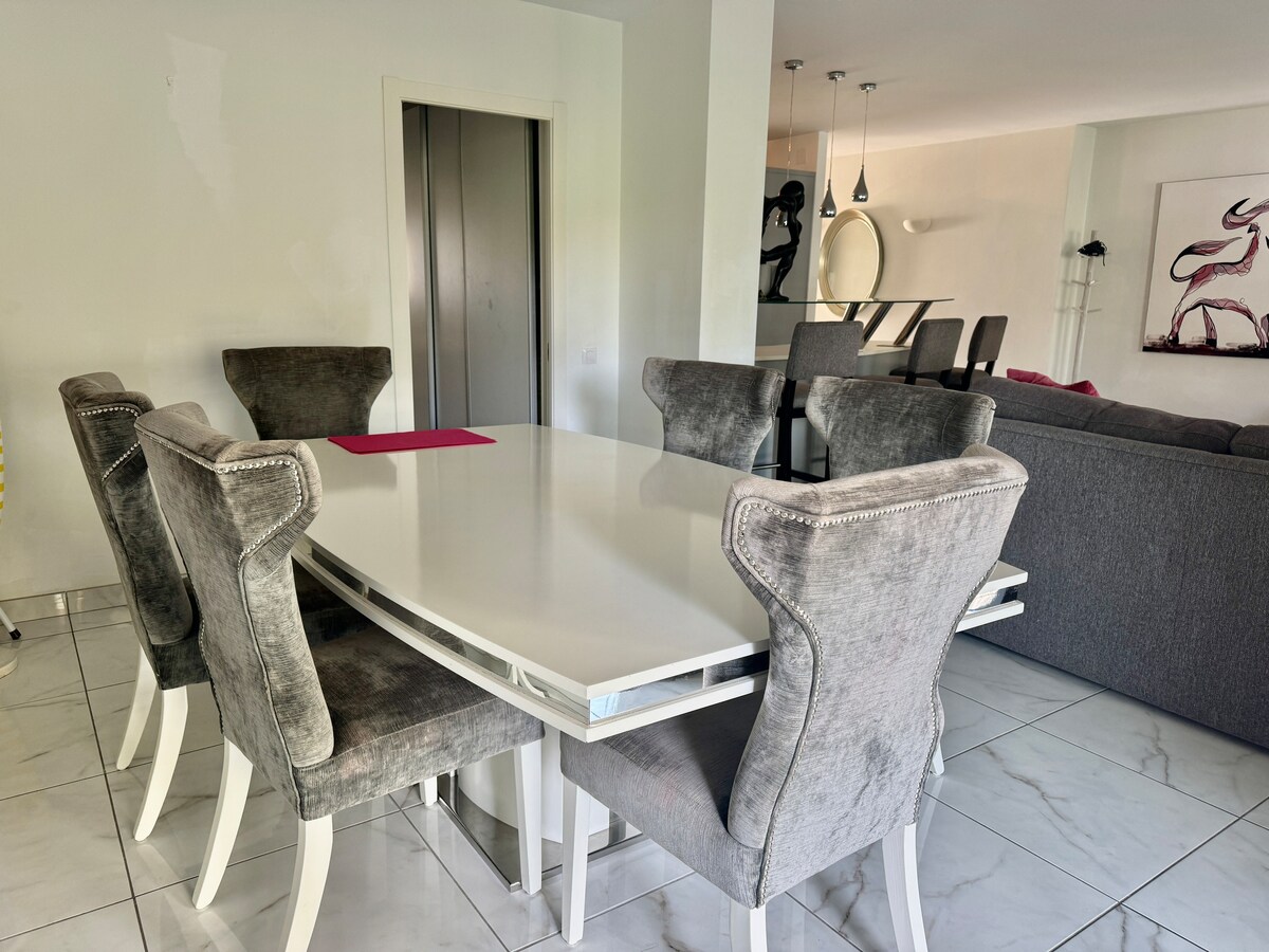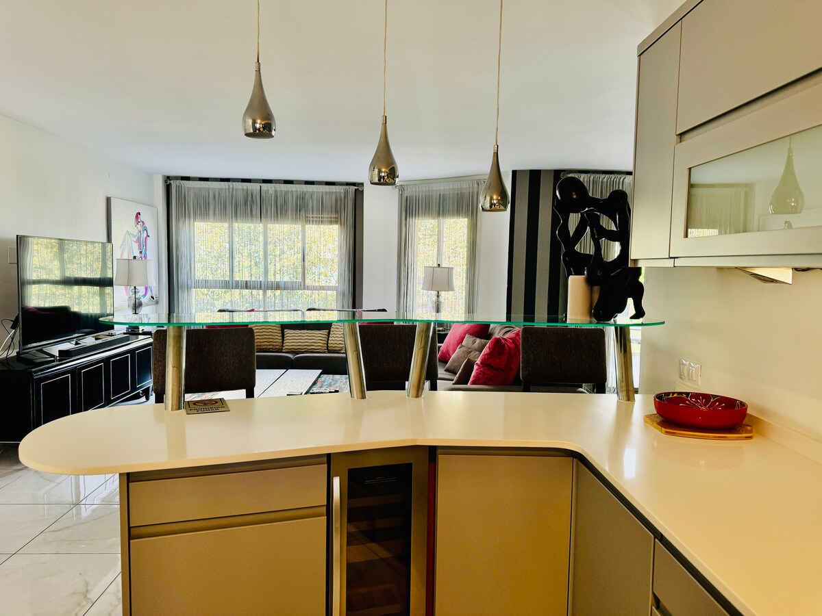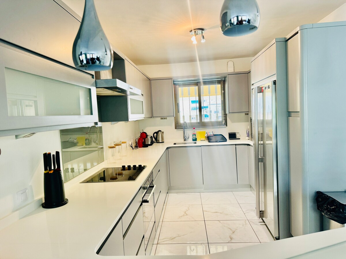 Modern, light and airy, recently refurbished with top qualities and light colors that will make your stay calm and relaxing, open plan well stocked kitchen with all appliances, should you fancy to cook while you're here.