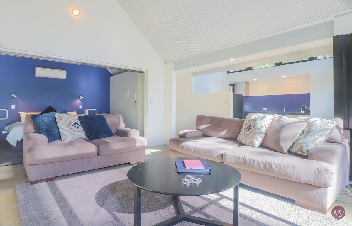 Mark and Sue are wonderful hosts - responsive, proactive and friendly. The Blue Bower exceeded our expectations. Spacious, comfortable and spotlessly clean. The fridge was stocked with sufficient basics and breakfast options for a few days. The bathroom facilities and amenities were first class and there were plenty of towels and spare linen. The lounge areas and deck were spacious and comfortable. The Blue Bower settles very comfortably into a beautiful Australian bush setting, yet is convenient to local beaches, shops and restaurants. The setting is lovely in the sunshine, and just as beautiful ... maybe more so in the rain. The Blue Bower would be a stunning all year, any weather retreat. We shared the Blue Bower with our adult daughter and never felt crowded or in each other's way - it would handle two couples comfortably. we were very grateful Mark and Sue shared their small patch of paradise with us.