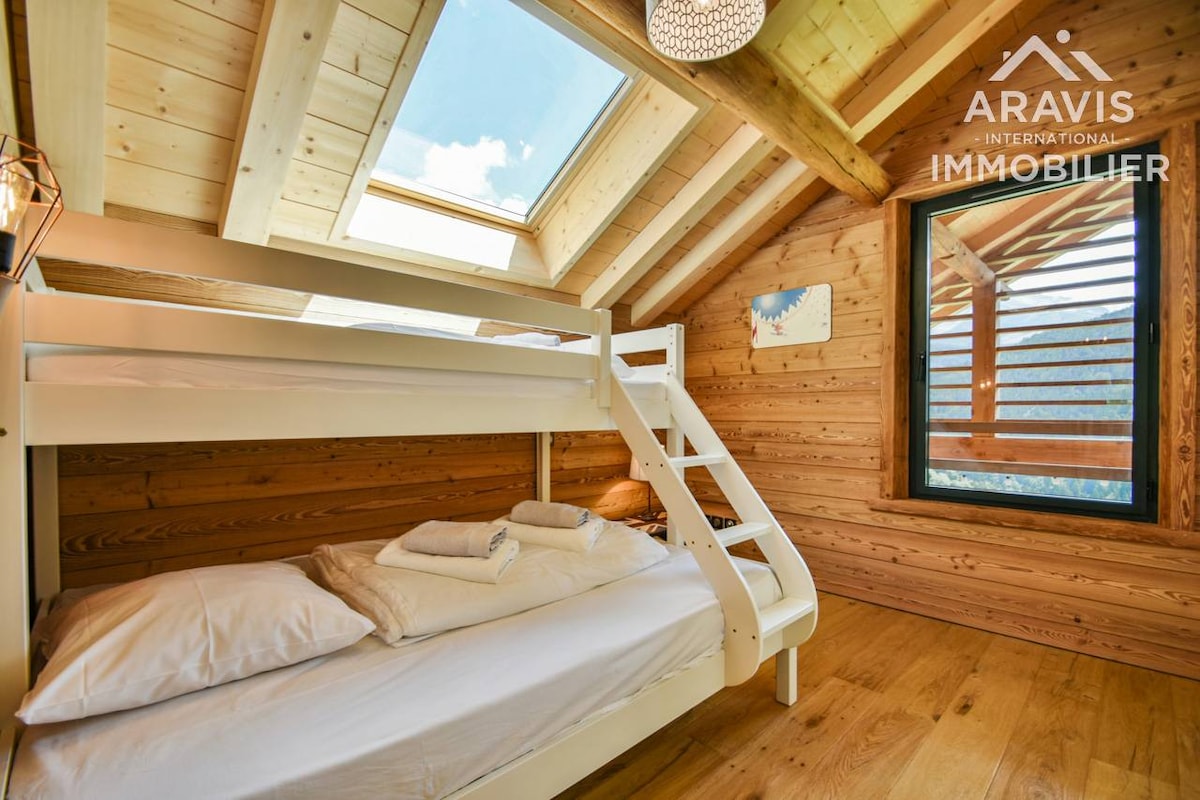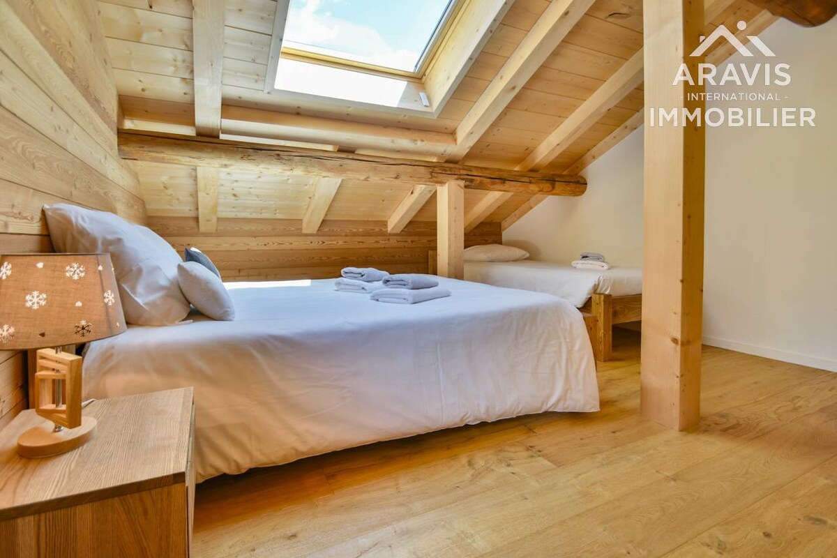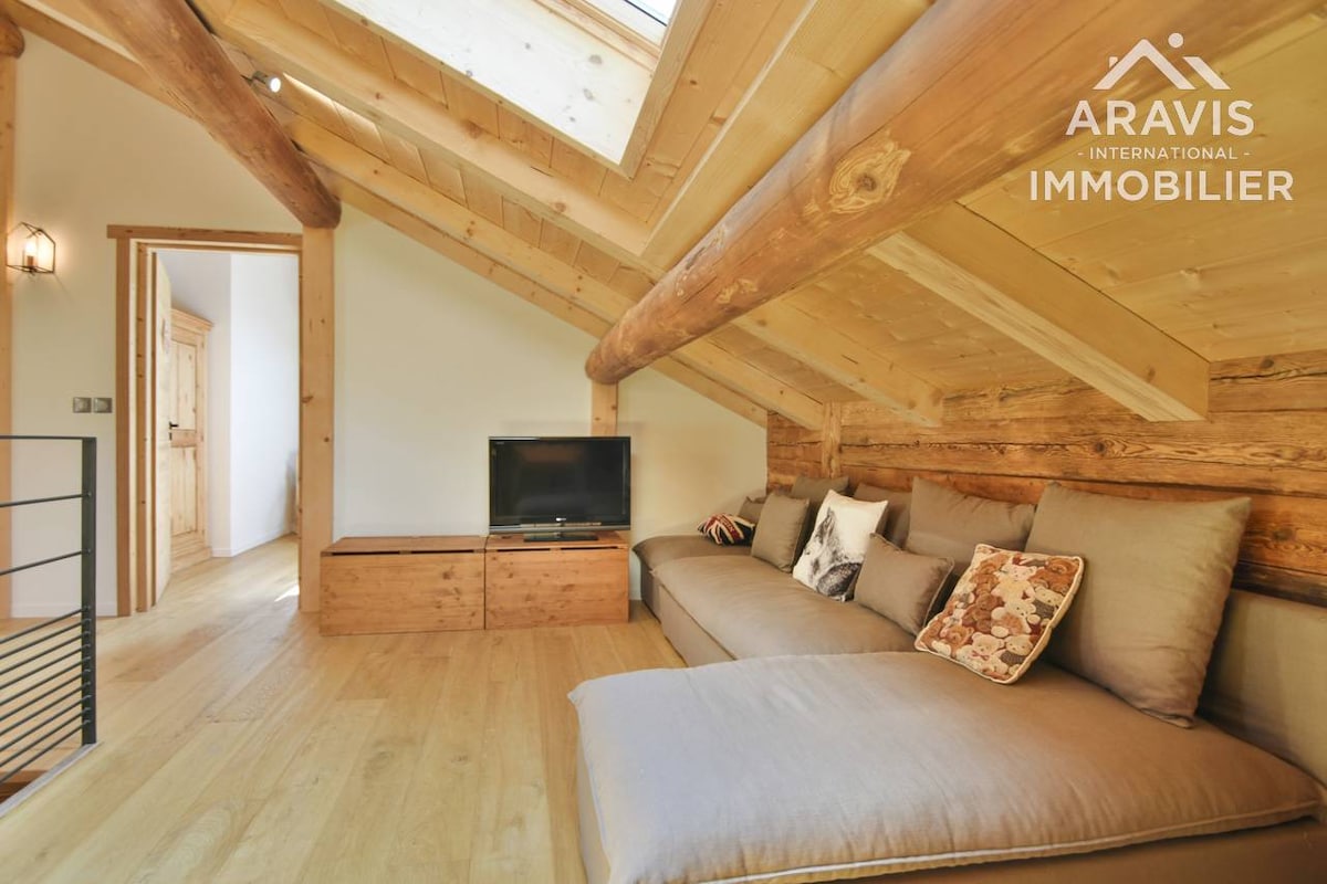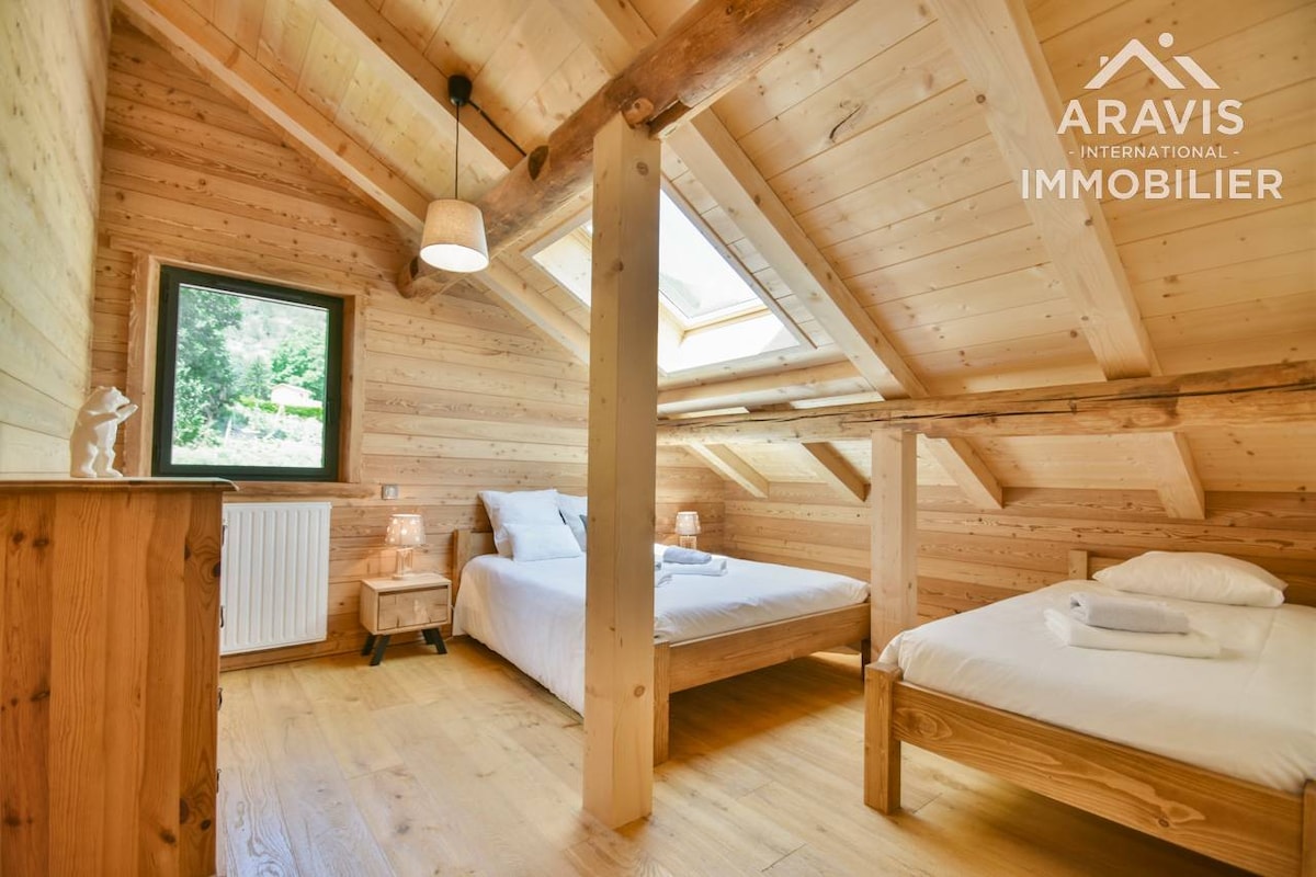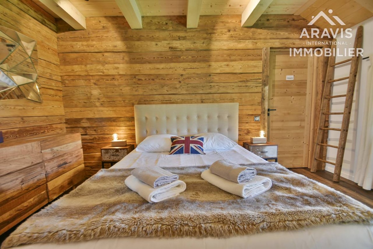 This large hayloft conversion sits atop a hill In Saint Jean de Sixt with stunning views out over the surrounding Aravis mountains. With it's exceptional volumes (200m²+), high ceilings, it really has it all to guarantee and exceptional mountain experience for up to 8 adults and 2 children. The chalet was completely renovated a couple of years ago to a very high finish, with high end decor throughout and all mod cons.On the ground floor, past the hallway that doubles as a ski fitting room, you have a laundry area with washer & dryer. Inside the chalet, you have a large master bedroom with ensuite bathroom & toilet and a separate toilet in the hallway. The living space then opens up onto a cosy lounge area with chimney, games and books, a large dining area with ample seating for up to 11-12 people. You then have the fully fitted & equipped kitchen that opens out onto the balcony from where you can appreciate the commanding views out onto the surrounding Aravis mountain range. Off from the living space you have a soundproofed TV room with DVD player & Canal+ satellite subscription etc. There is then a recessed study space with sofa (that can double as an extra double bed if required). Upstairs, there are a further 3 bedrooms (3 doubles, 1 have an additional single bed) There's a shower, bath & extra toilet upstairs too together with another TV space as well as Foosball! The chalet has broadband internet. It is located a 2 min drive into the centre of the village & 5 mins into the heart of either Le Grand Bornand or La Clusaz making it ideal to enjoy both areas. Cots and highchair available on request. Sheets and towels are provided and the beds will be made up for your arrival.
