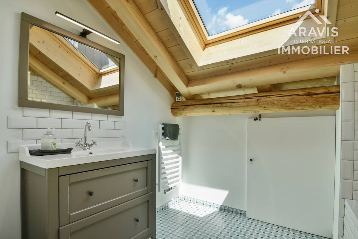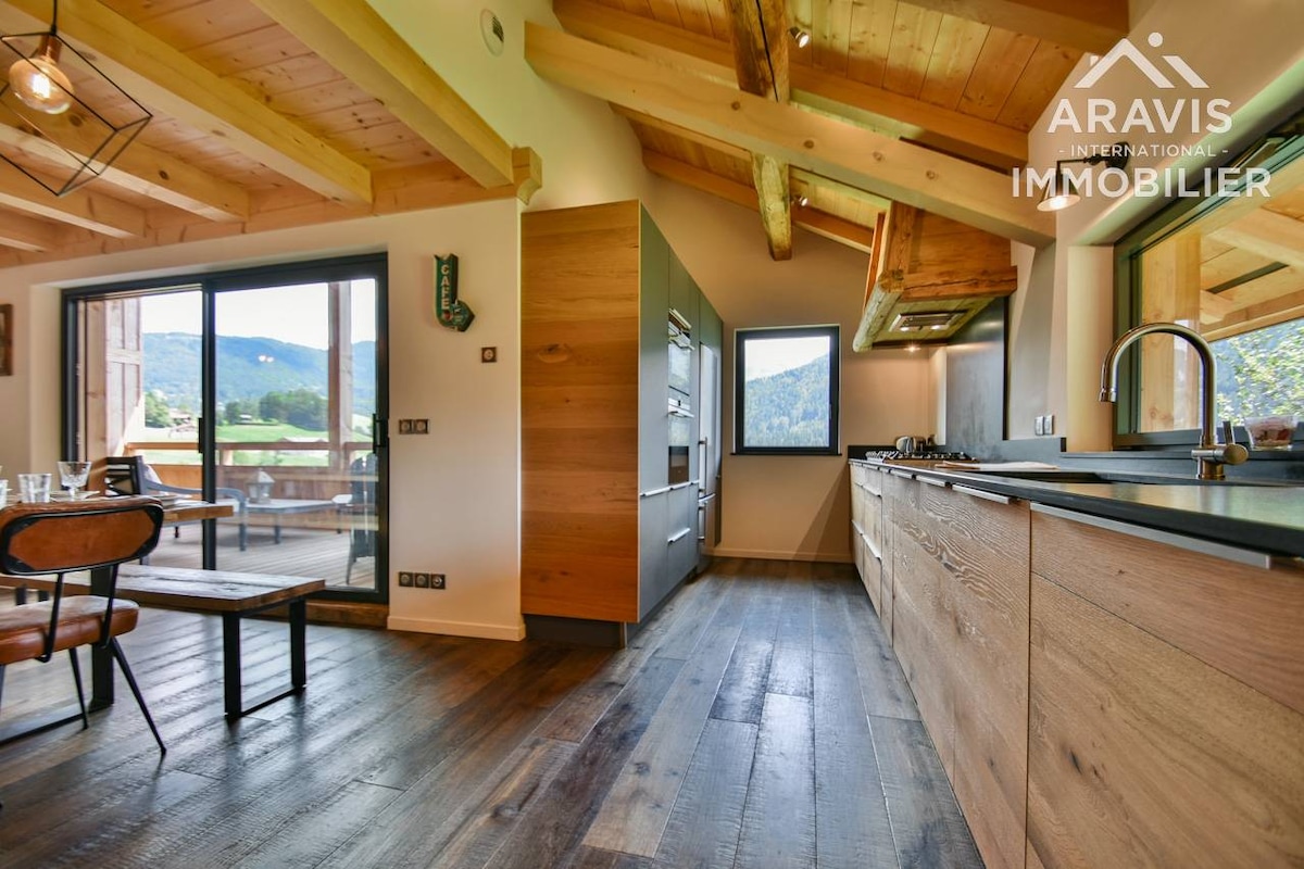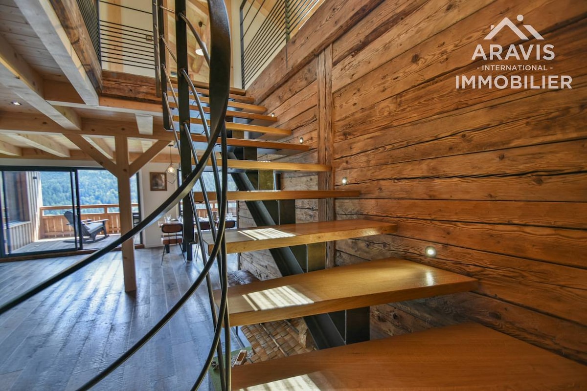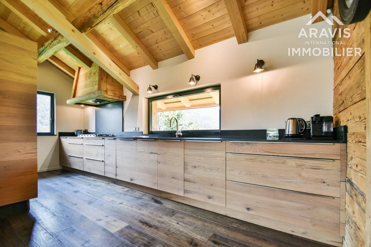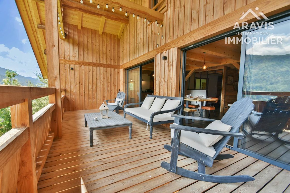 This large hayloft conversion sits atop a hill In Saint Jean de Sixt with stunning views out over the surrounding Aravis mountains. With it's exceptional volumes (200m²+), high ceilings, it really has it all to guarantee and exceptional mountain experience for up to 8 adults and 2 children. The chalet was completely renovated a couple of years ago to a very high finish, with high end decor throughout and all mod cons.On the ground floor, past the hallway that doubles as a ski fitting room, you have a laundry area with washer & dryer. Inside the chalet, you have a large master bedroom with ensuite bathroom & toilet and a separate toilet in the hallway. The living space then opens up onto a cosy lounge area with chimney, games and books, a large dining area with ample seating for up to 11-12 people. You then have the fully fitted & equipped kitchen that opens out onto the balcony from where you can appreciate the commanding views out onto the surrounding Aravis mountain range. Off from the living space you have a soundproofed TV room with DVD player & Canal+ satellite subscription etc. There is then a recessed study space with sofa (that can double as an extra double bed if required). Upstairs, there are a further 3 bedrooms (3 doubles, 1 have an additional single bed) There's a shower, bath & extra toilet upstairs too together with another TV space as well as Foosball! The chalet has broadband internet. It is located a 2 min drive into the centre of the village & 5 mins into the heart of either Le Grand Bornand or La Clusaz making it ideal to enjoy both areas. Cots and highchair available on request. Sheets and towels are provided and the beds will be made up for your arrival.