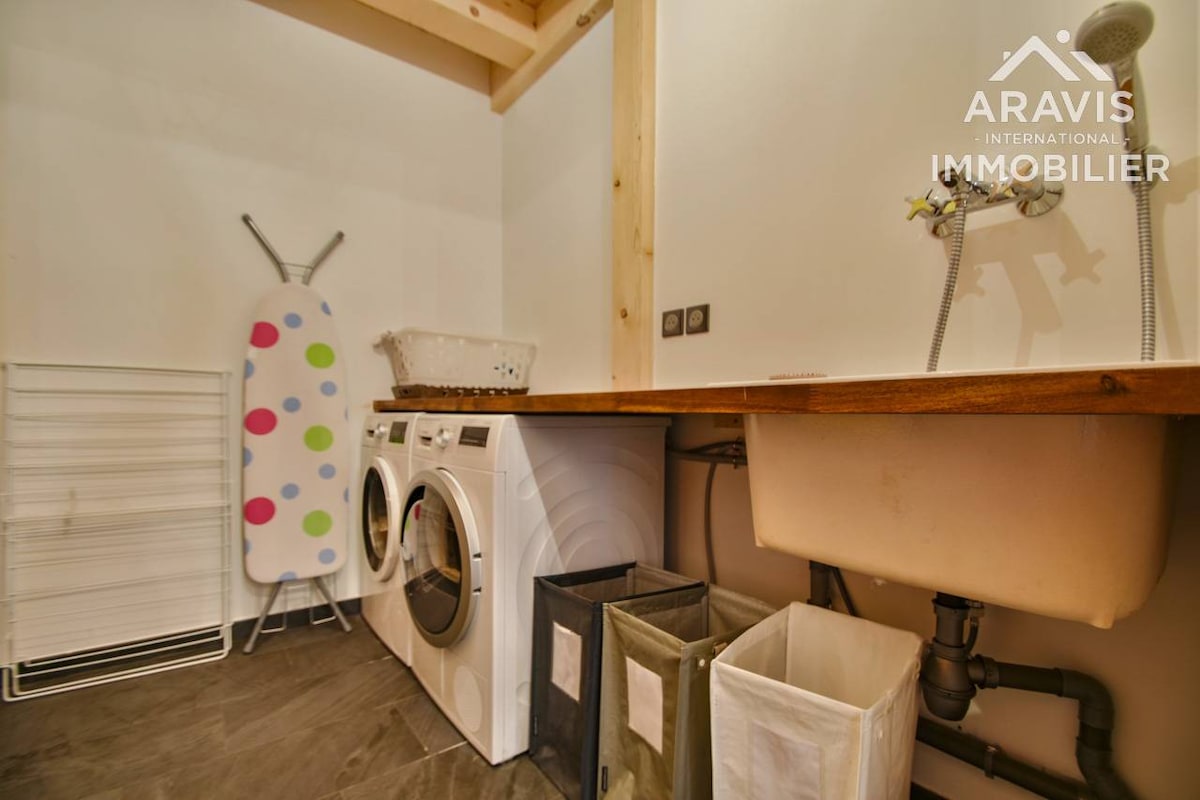 On the ground floor, past the hallway that doubles as a ski fitting room, you have a laundry area with washer & dryer. Inside the chalet, you have a large master bedroom with ensuite bathroom & toilet and a separate toilet in the hallway. The living space then opens up onto a cosy lounge area with chimney, games and books, a large dining area with ample seating for up to 11-12 people. You then have the fully fitted & equipped kitchen that opens out onto the balcony from where you can appreciate the commanding views out onto the surrounding Aravis mountain range. Off from the living space you have a soundproofed TV room with DVD player & Canal+ satellite subscription etc. There is then a recessed study space with sofa (that can double as an extra double bed if required). Upstairs, there are a further 3 bedrooms (3 doubles, 1 have an additional single bed) There's a shower, bath & extra toilet upstairs too together with another TV space as well as Foosball! The chalet has broadband internet. It is located a 2 min drive into the centre of the village & 5 mins into the heart of either Le Grand Bornand or La Clusaz making it ideal to enjoy both areas. Cots and highchair available on request. Sheets and towels are provided and the beds will be made up for your arrival.
