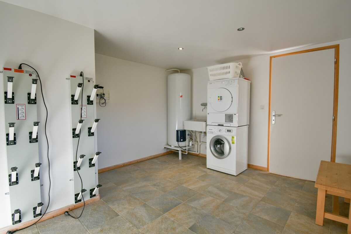 - A ski room equipped with a boot dryer, laundry room with washing machine and dryer